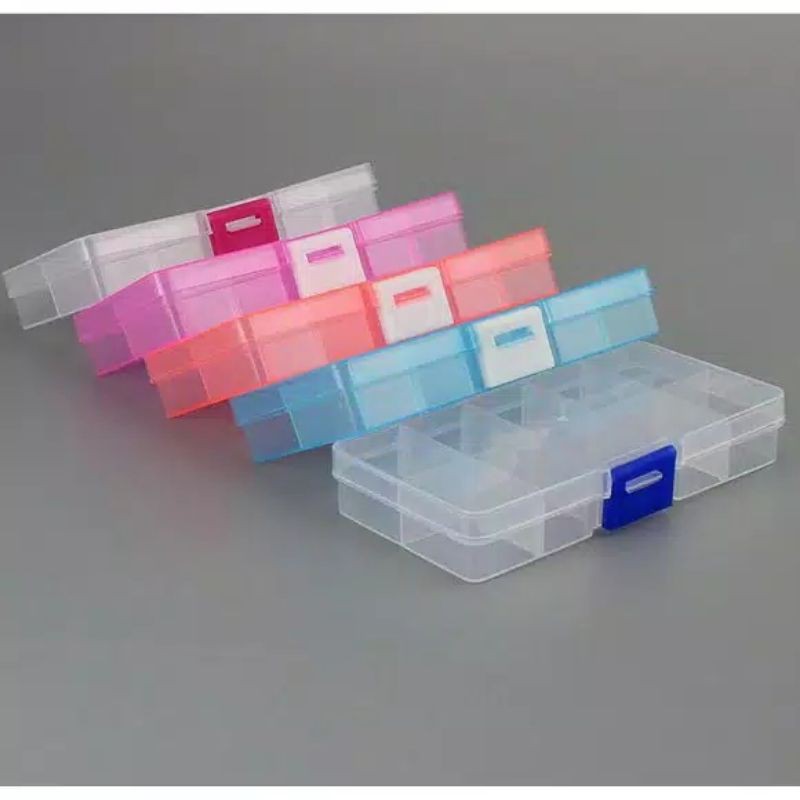 Kotak Kecil Plastik 10 Sekat Wadah Baut Mur Manik-Manik Perhiasan Obat Box Case Tempat Penyimpanan