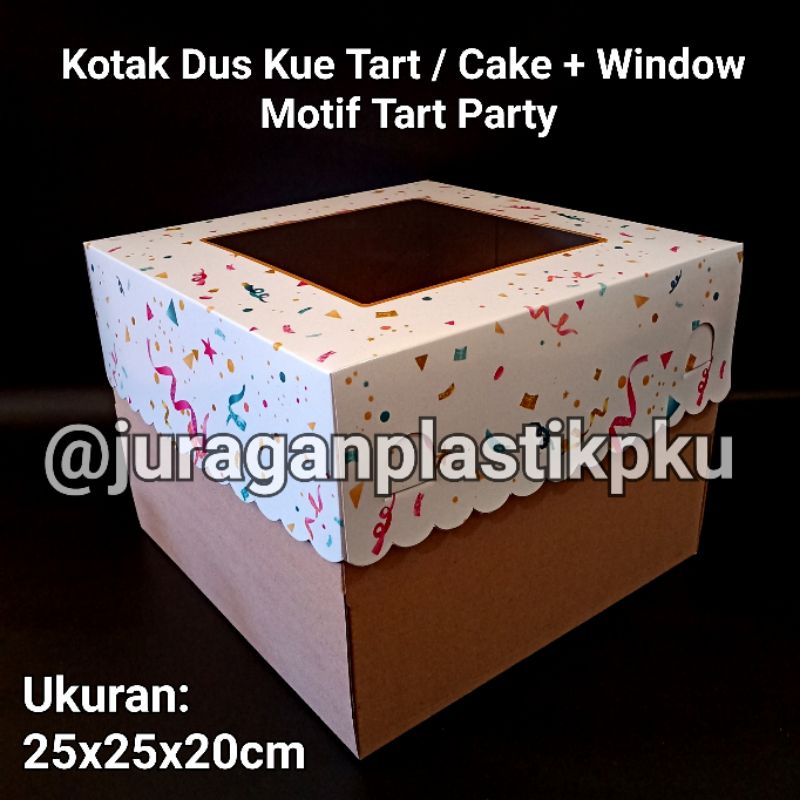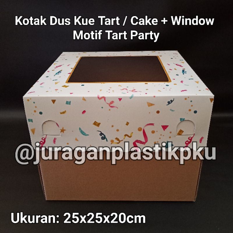 Kotak Kue Tart / Box Cake Motif Tart Party 25x25x20 cm / Dus Kue Tar Ulang Tahun Transparan 20 cm