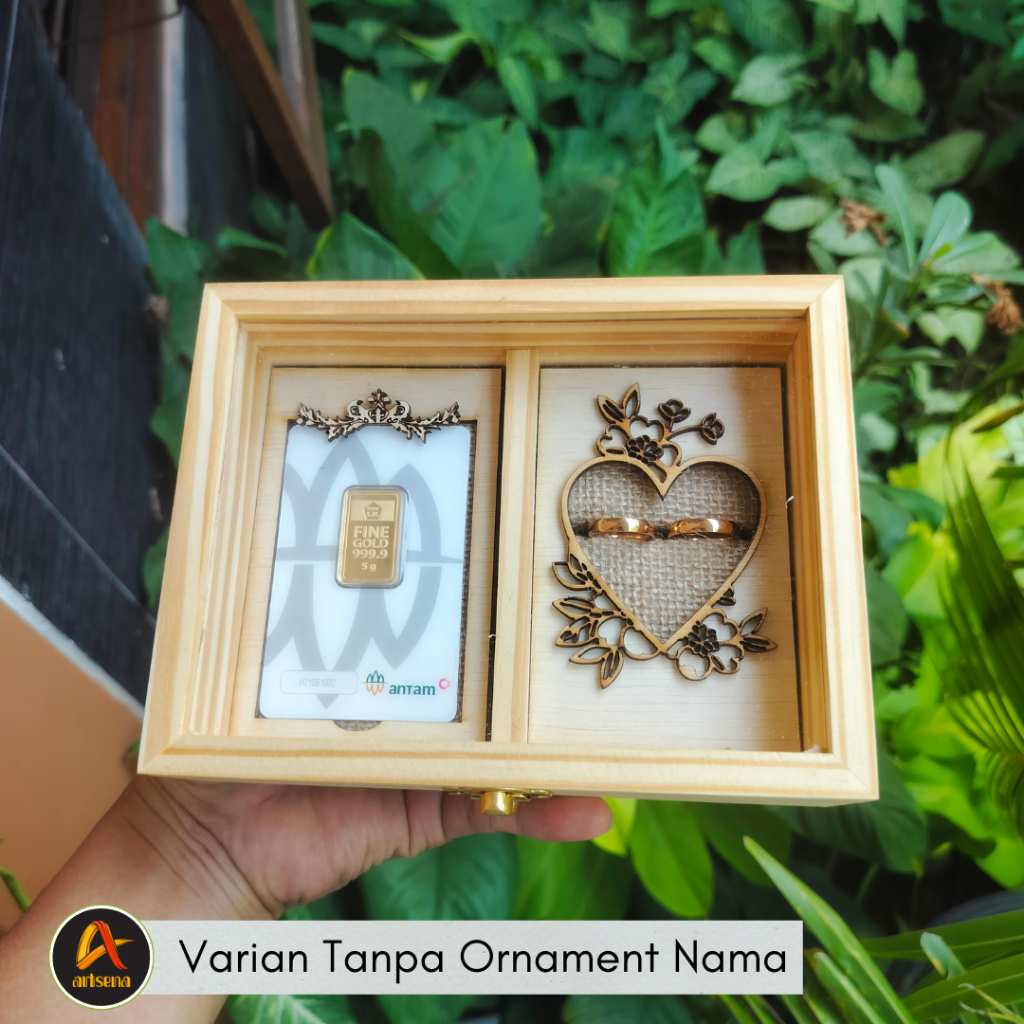 Kotak Mahar Cincin & Emas Antam dengan Ornament Cutting Nama | Kotak Mahar 2in1 | Box Mahar Unik