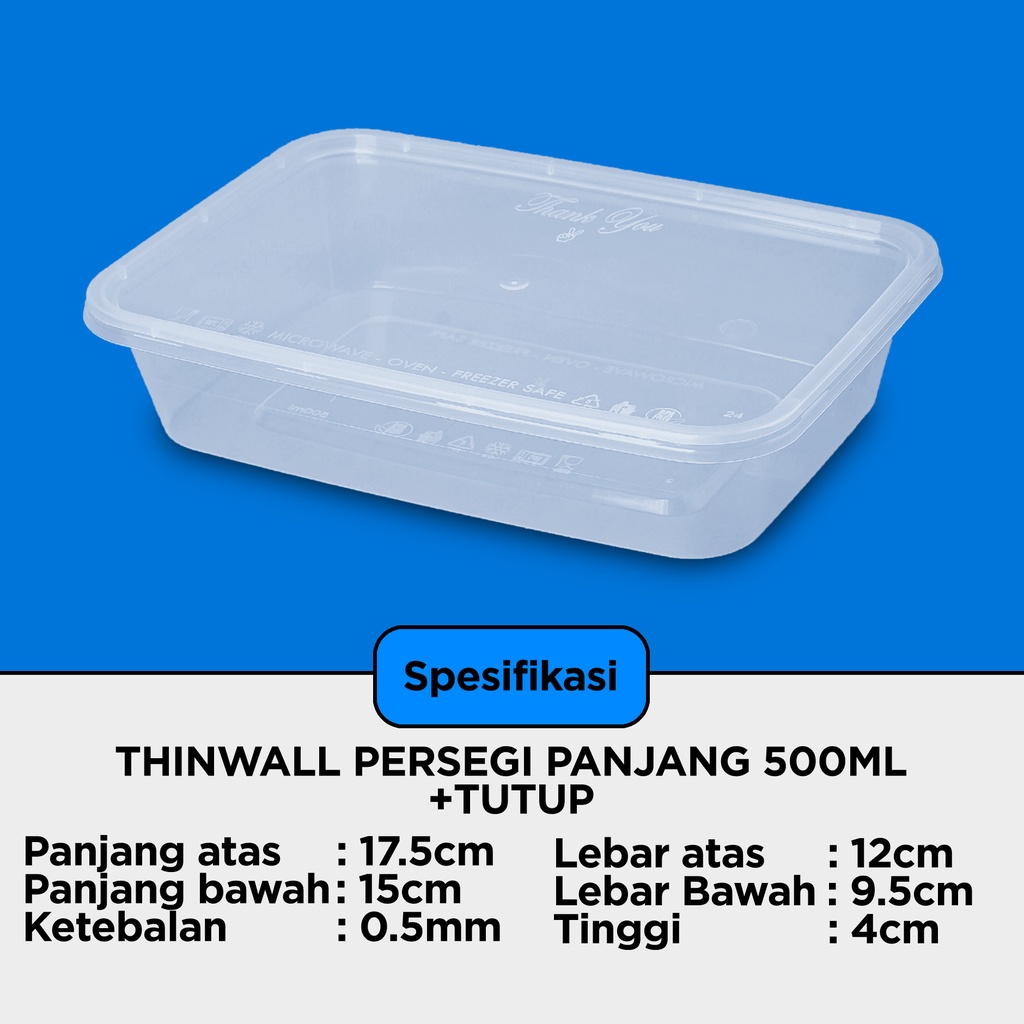 Kotak Makan Plastik 500 ML Thinwall / Mika Box / Persegi Panjang MURAH