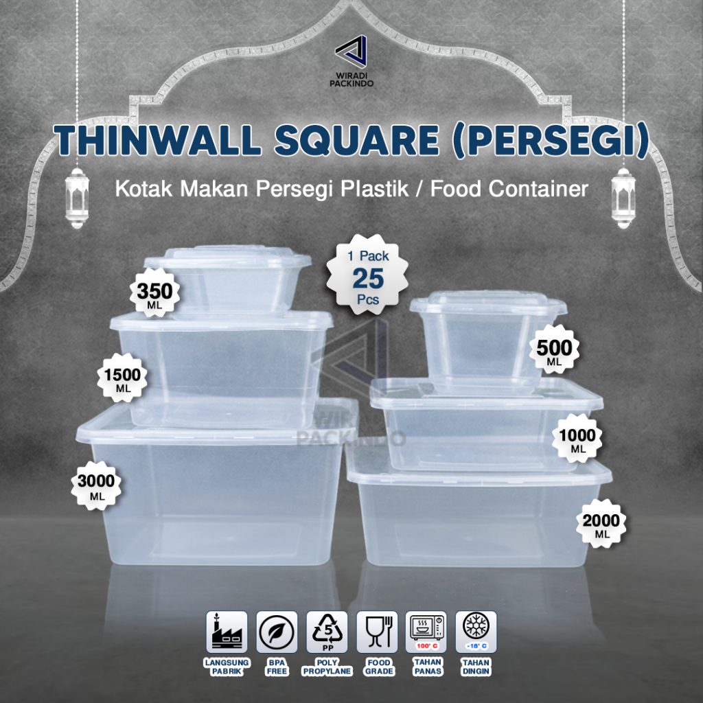 Kotak Makan Plastik Persegi - Thinwall Square Semua Ukuran
