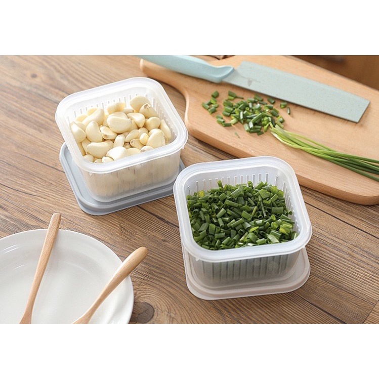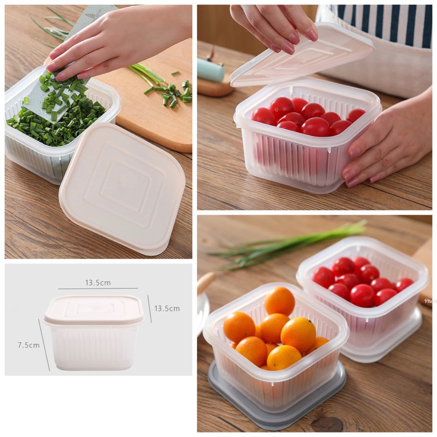 Kotak Makan Tempat Persegi Saringan Air Toples Buah Sayur Dapur Bawang Air Tight Container Fresh Box 2 Lapis