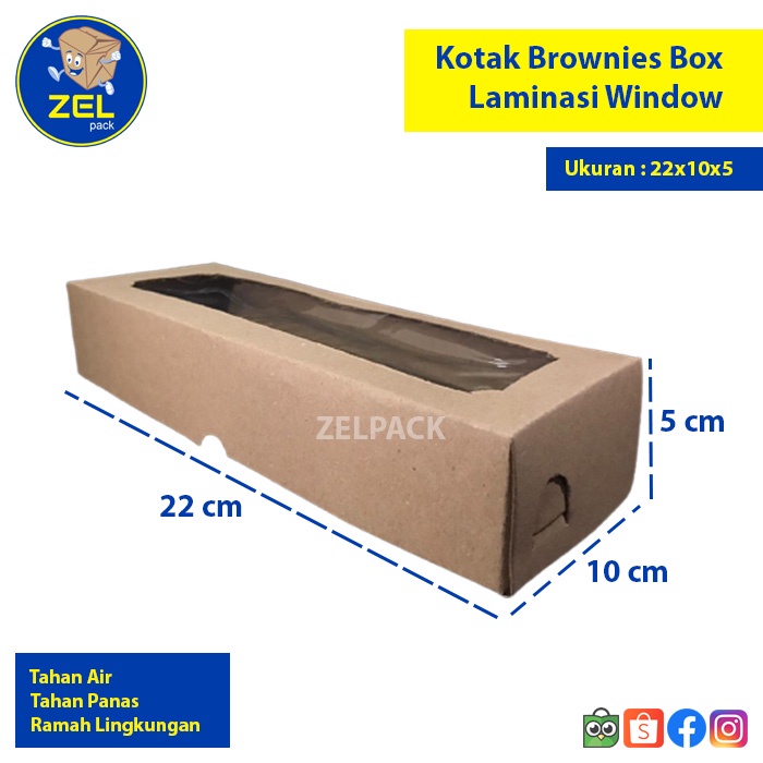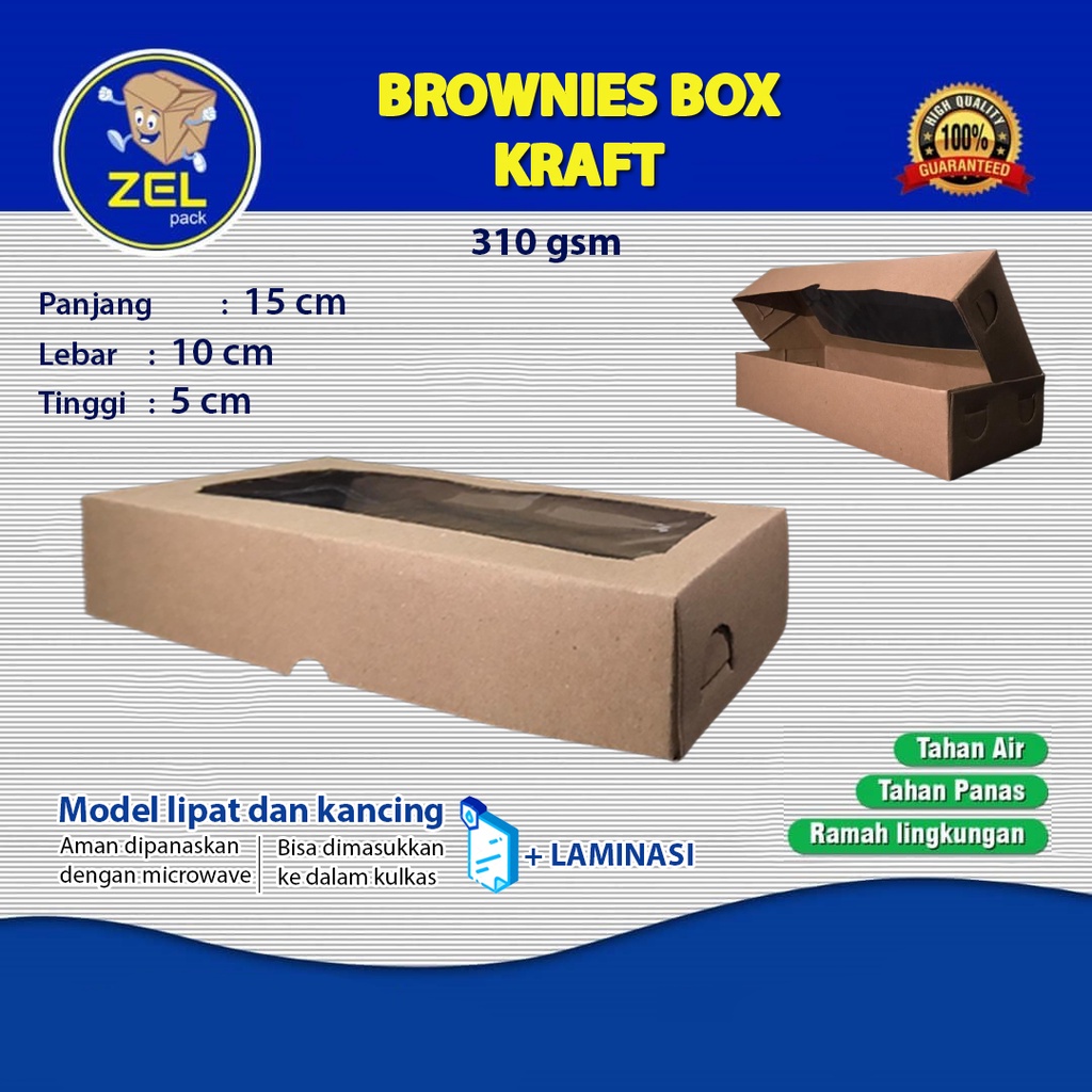 Kotak Makanan Kertas Kemasan Brownies 15 Kraft Cokelat Laminasi Window
