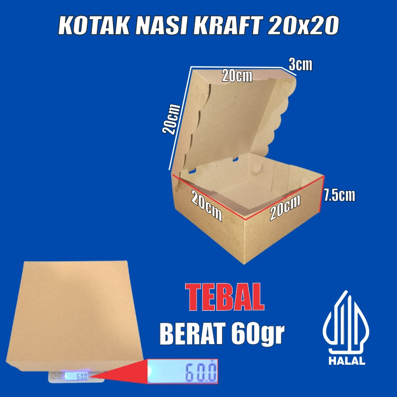 Kotak Nasi Box Catering Tebal 63gr u Dus Mika 18x18 / 20x20 Duplex Putih Kraft Coklat Pack GJP