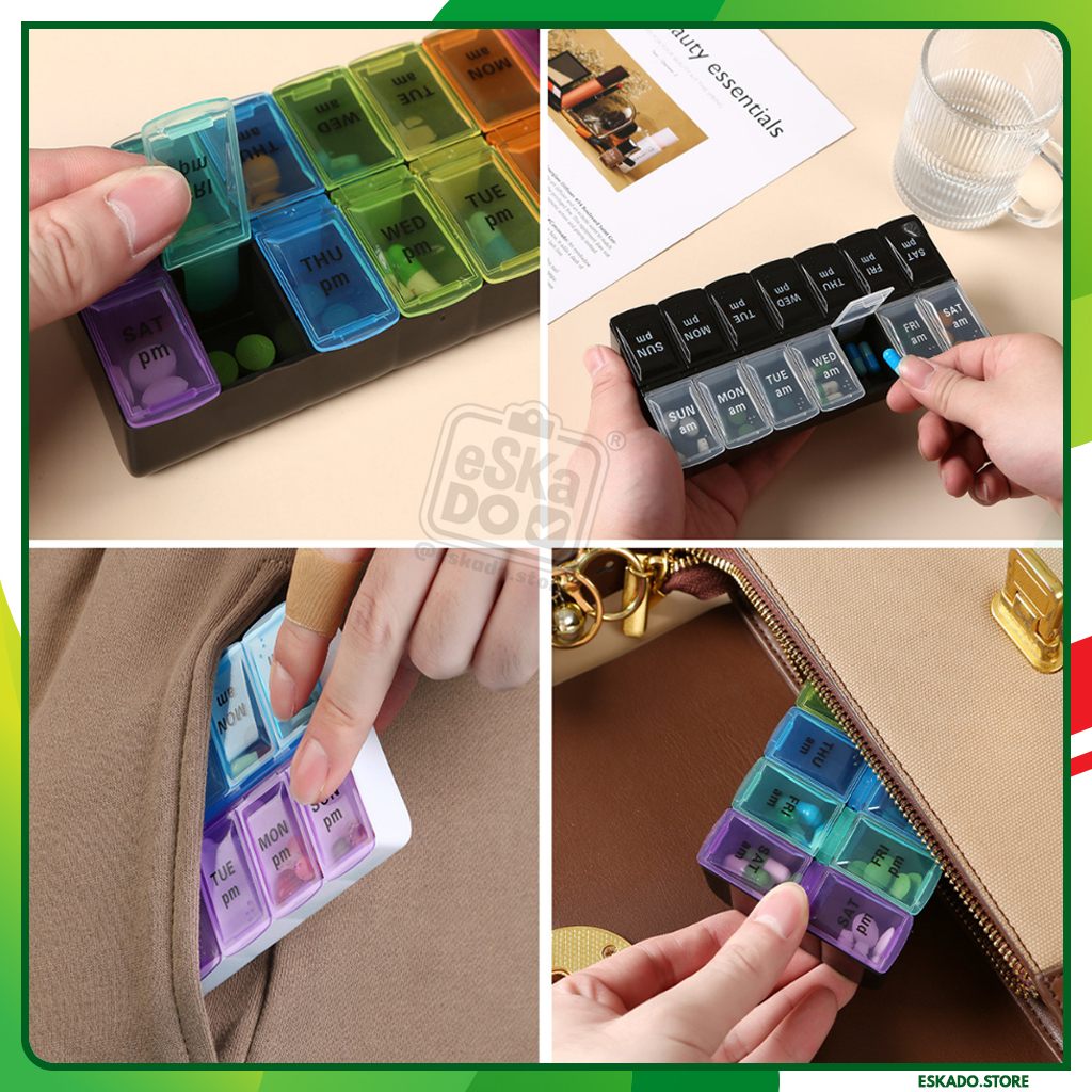 Kotak Obat 14 Kompartemen / Kotak Obat Portable 1 Minggu Siang Malam