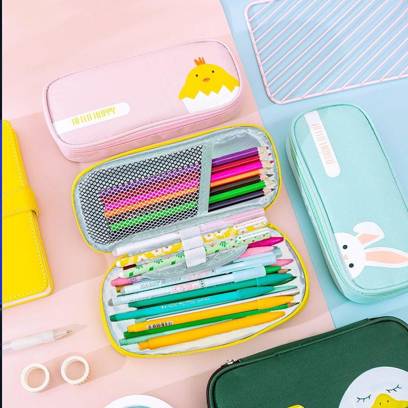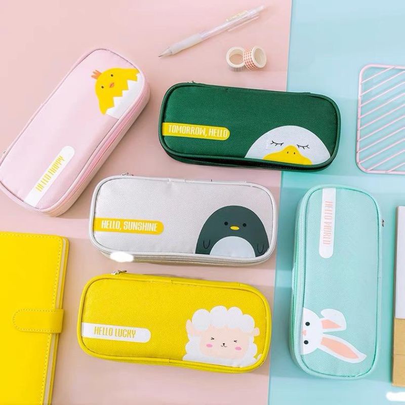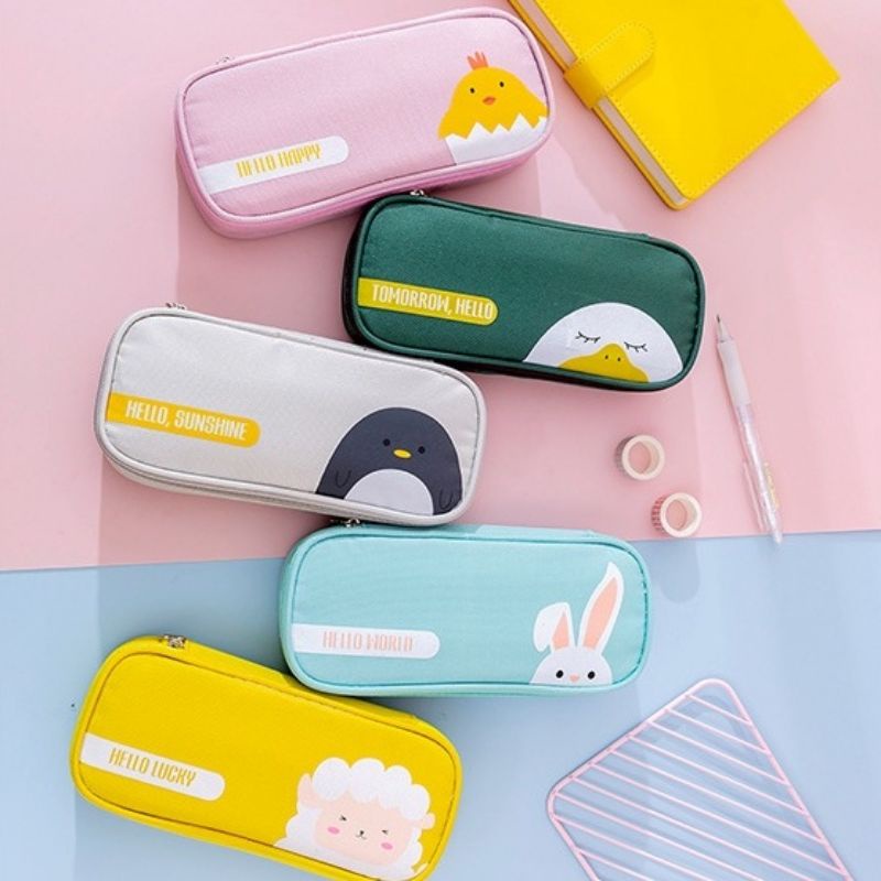 Kotak Pensil Kanvas Animal 3 Layers/ kotak pensil kartun/kotak pensil duck bebek/kotak pensil bunny kelinci/kotak pensil chicken ayam /kotak pensil pinguin/kotak pensil sheep kambing