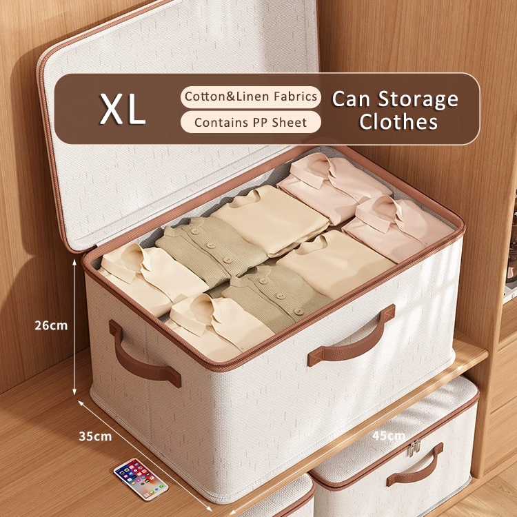 Kotak Penyimpanan Linen Katun + Resleting Storage Box Kotak Penyimpanan Katun Dan Linen