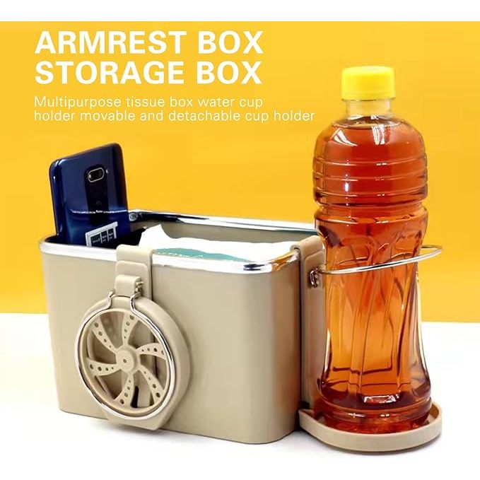 Kotak Penyimpanan Tempat Tissue Mobil 2 Cup Holder / Kotak Penyimpanan Sandaran Tangan Mobil / Organizer Mobil dengan Tempat Gelas / Aksesori Interior Mobil