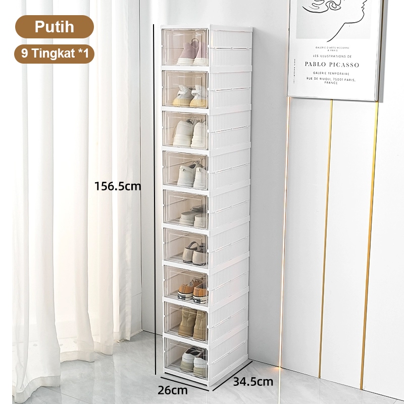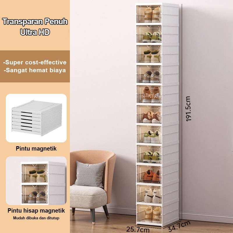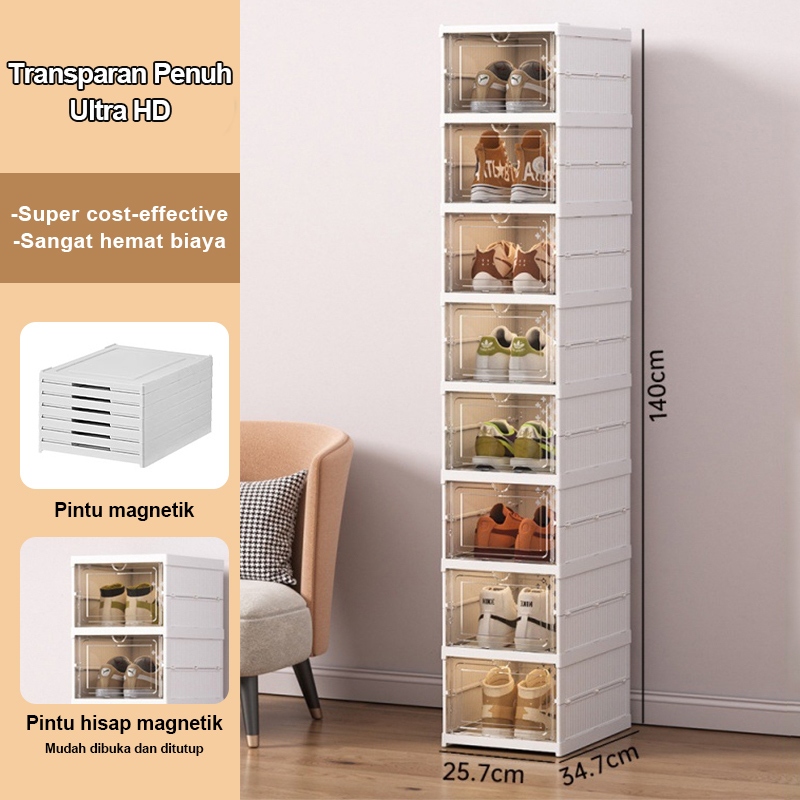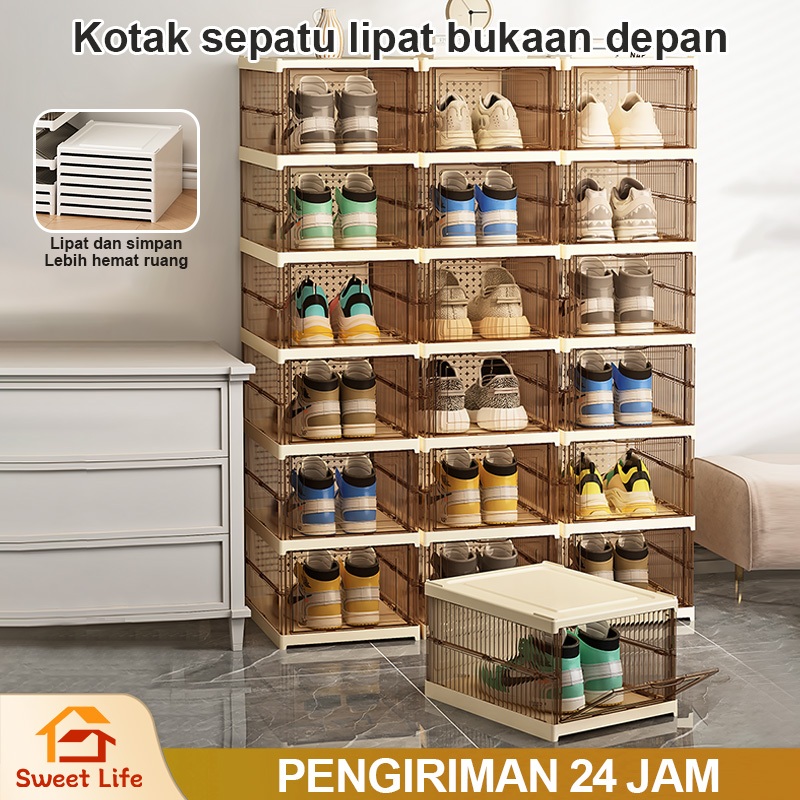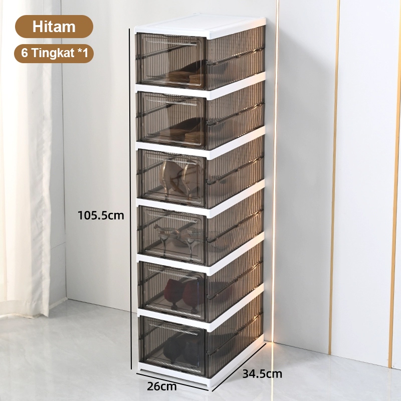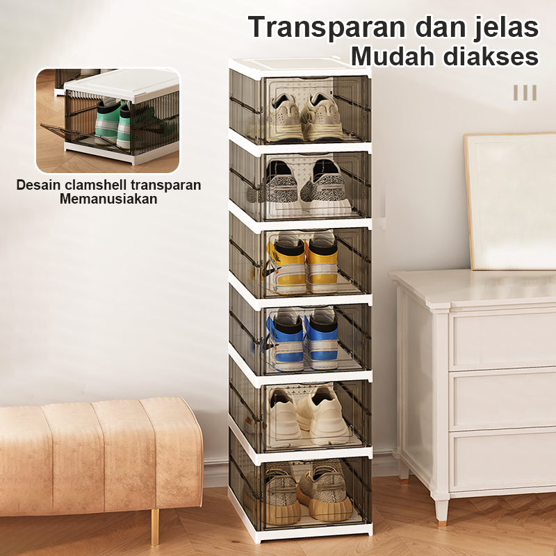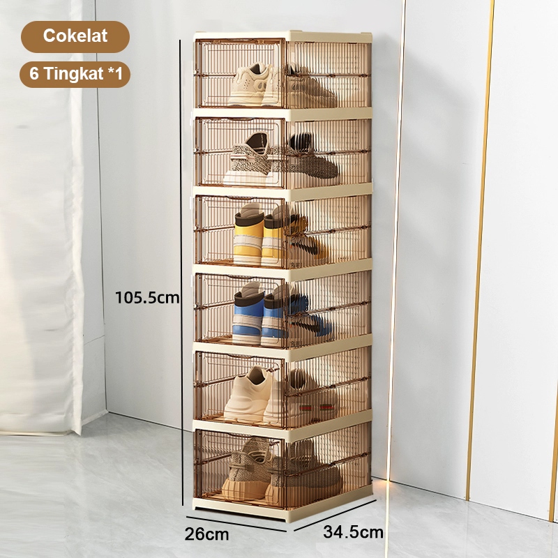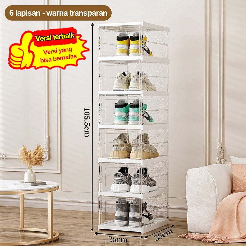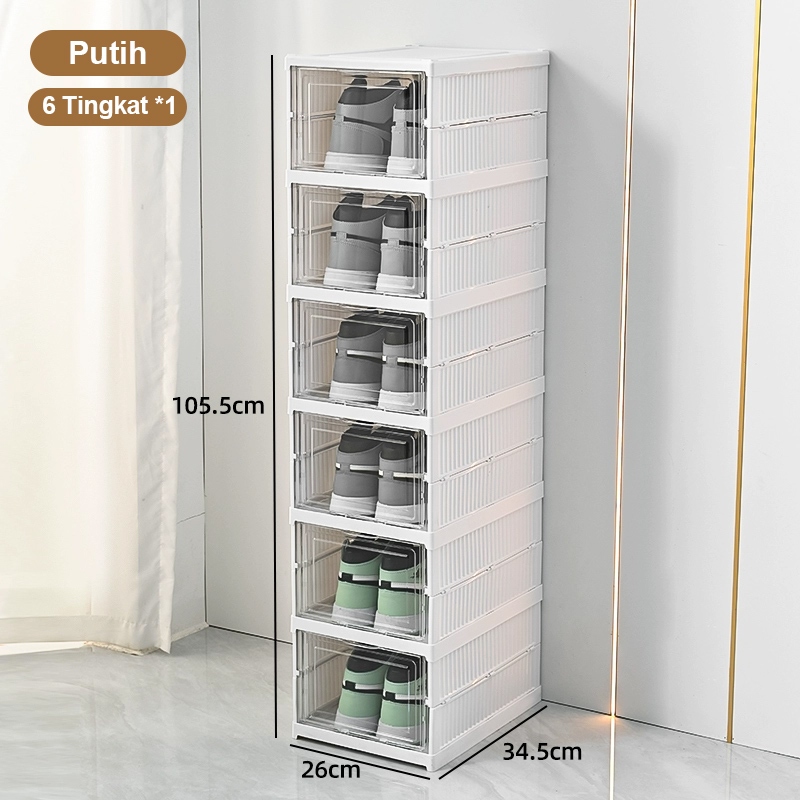 Kotak Sepatu Lipat Rak Sepatu Lipat 6 Tingkat Serbaguna Penyimpanan Vertikal Portable Rak Sepatu Susun Tertutup Lemari Sepatu