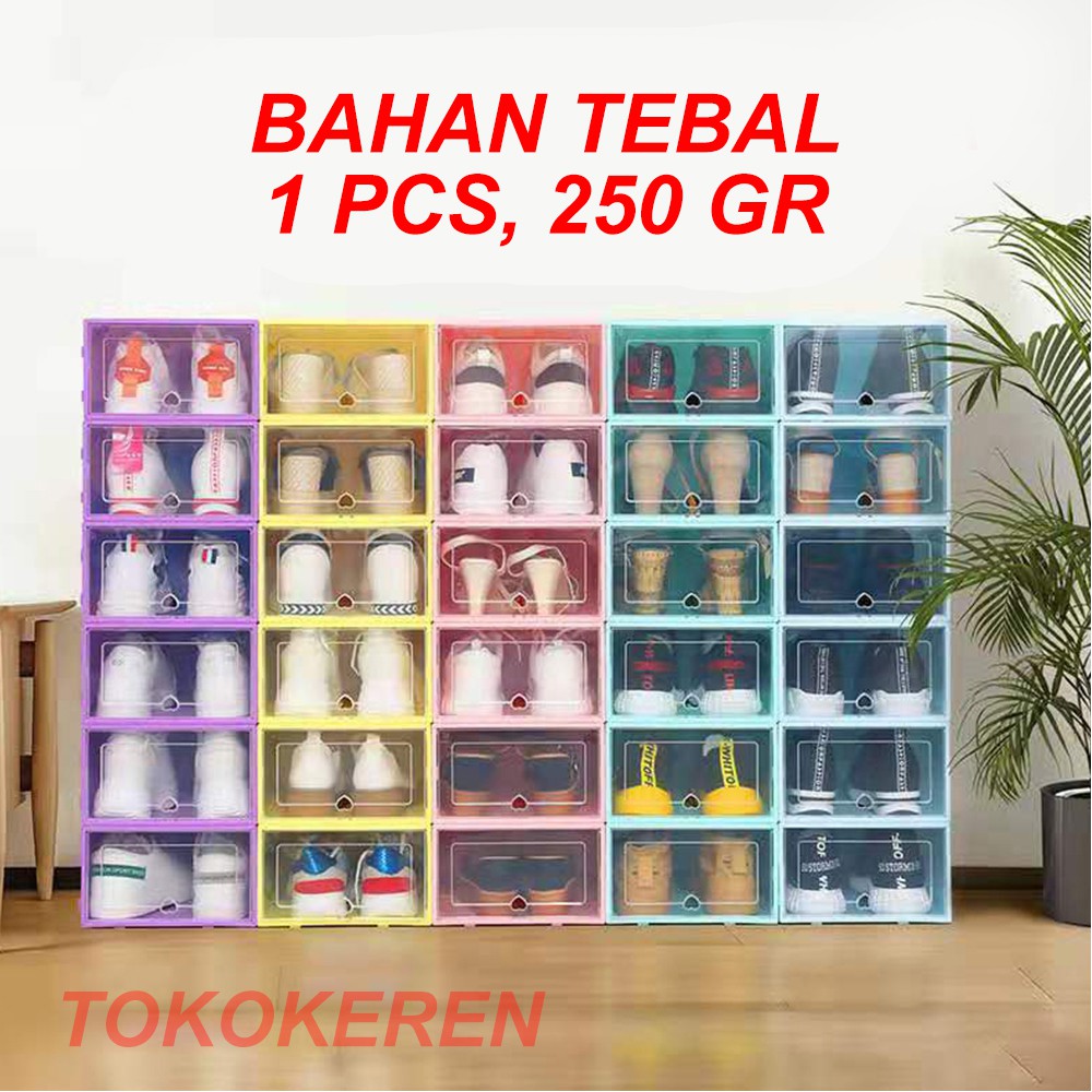 Kotak Sepatu Transparan Putih Lis Hitam | Shoe Box Lipat Aesthetic | Storage Organizer Tebal