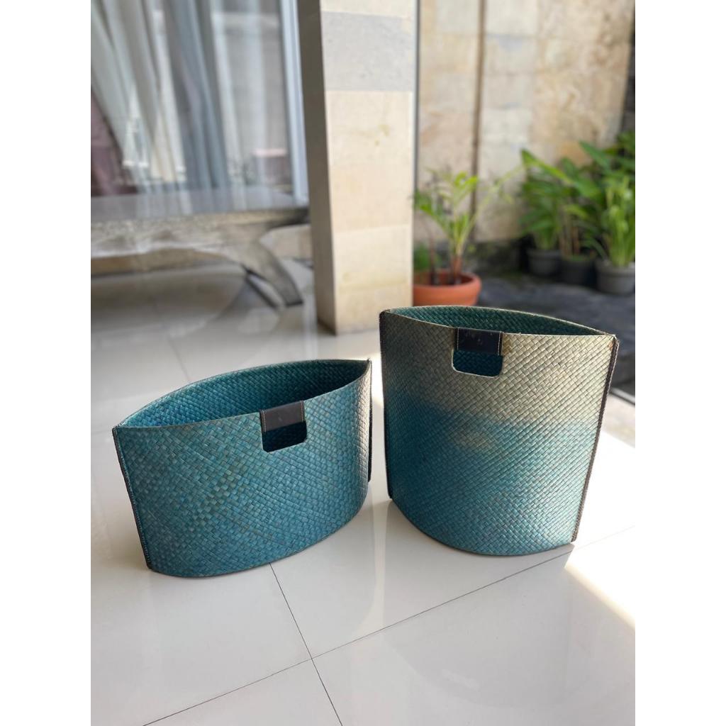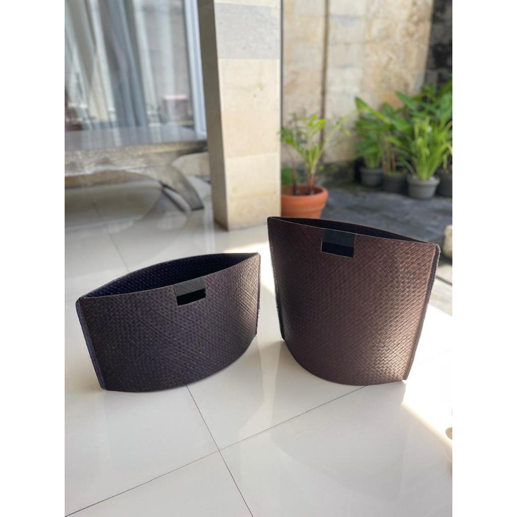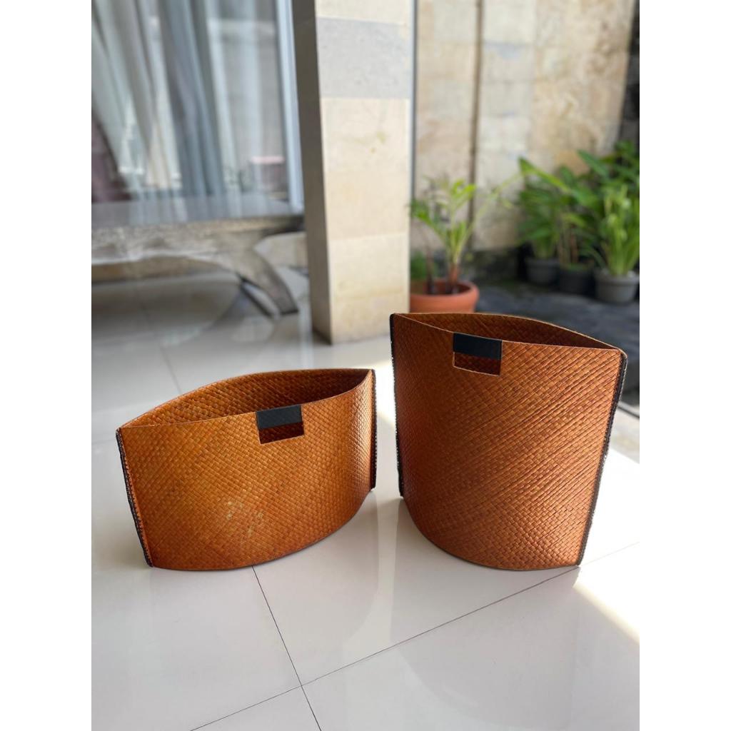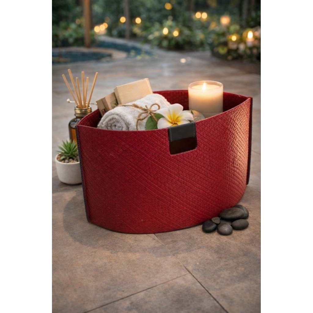 Kotak Serbaguna Penyimpanan Pandan Oval dengan Pilihan Warna Hitam Biru Merah Hijau Orange Ideal untuk Majalah Koran dan Lainnya