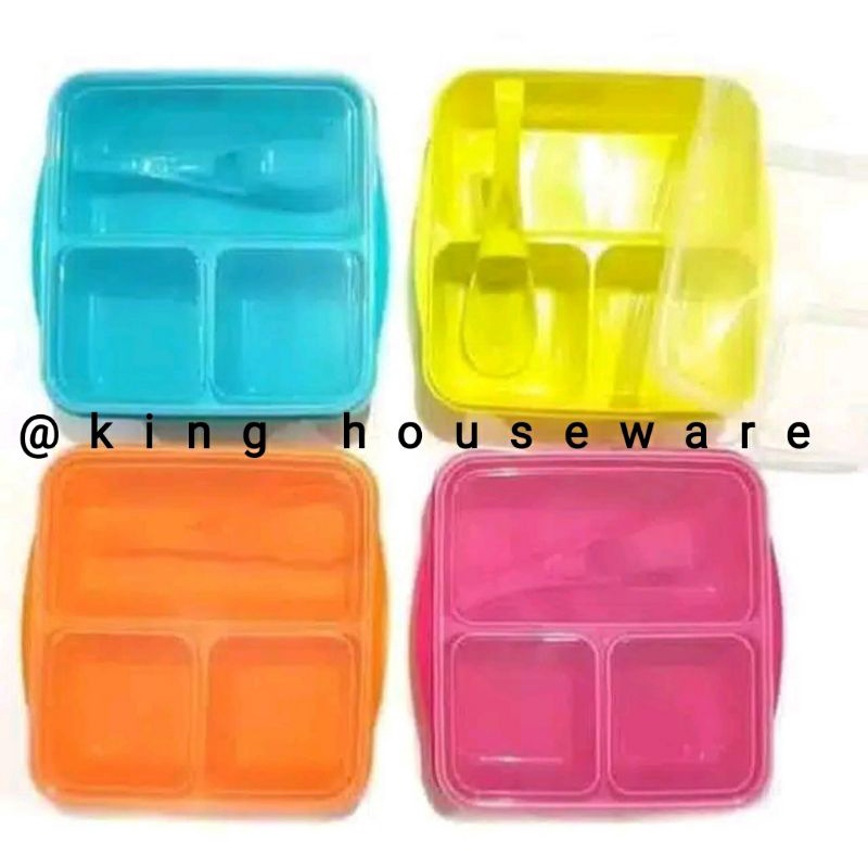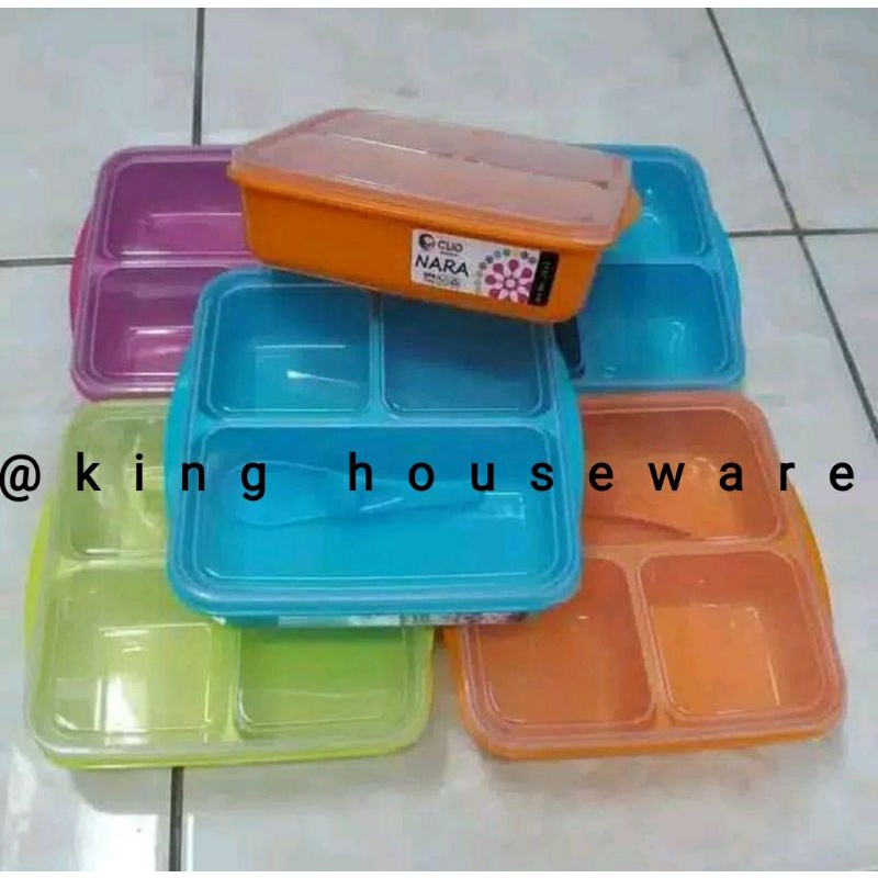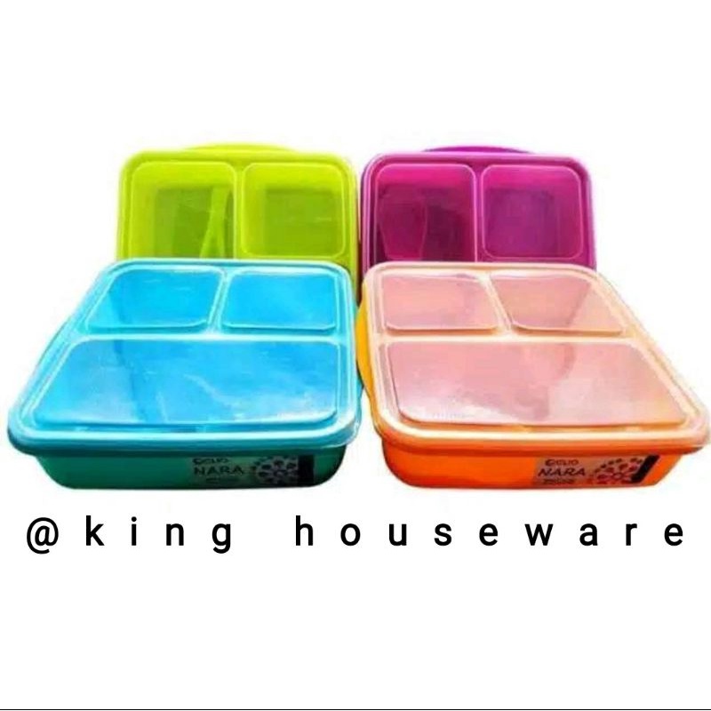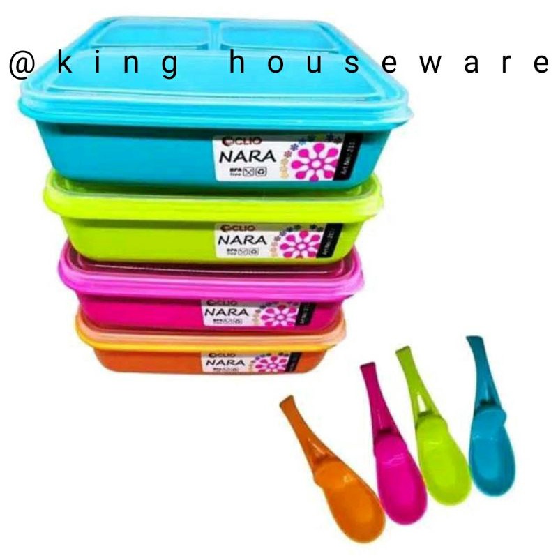 Kotak bontot/kotak makan/kotak bersekat/dengan sendok plastik/kotak NARA BPA FREE