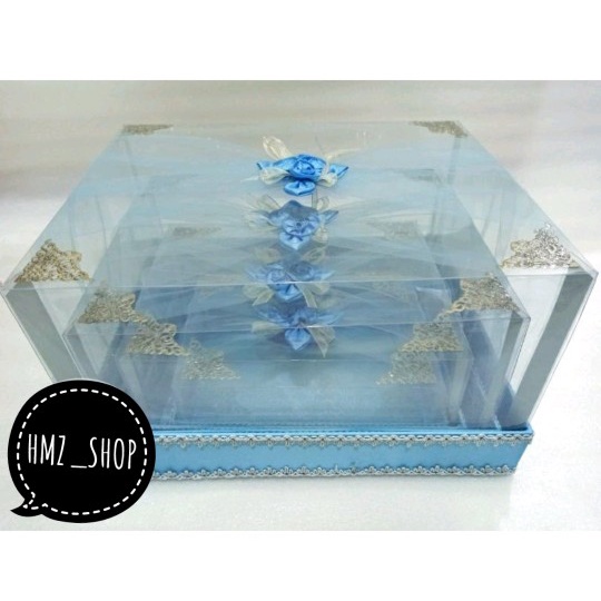 Kotak hantaran / kotak seserahan / box hantaran full mika model tile 1 set warna biru muda