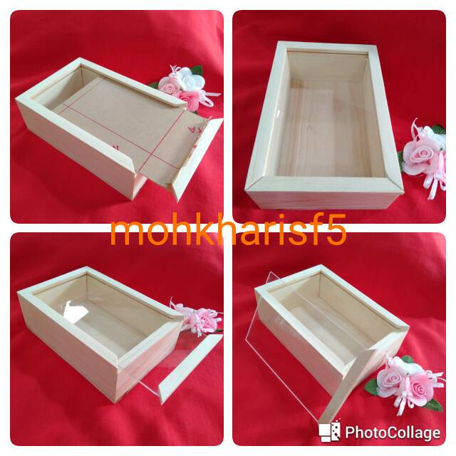 Kotak kayu akrilik 15 x 10 x 5 cm sliding box