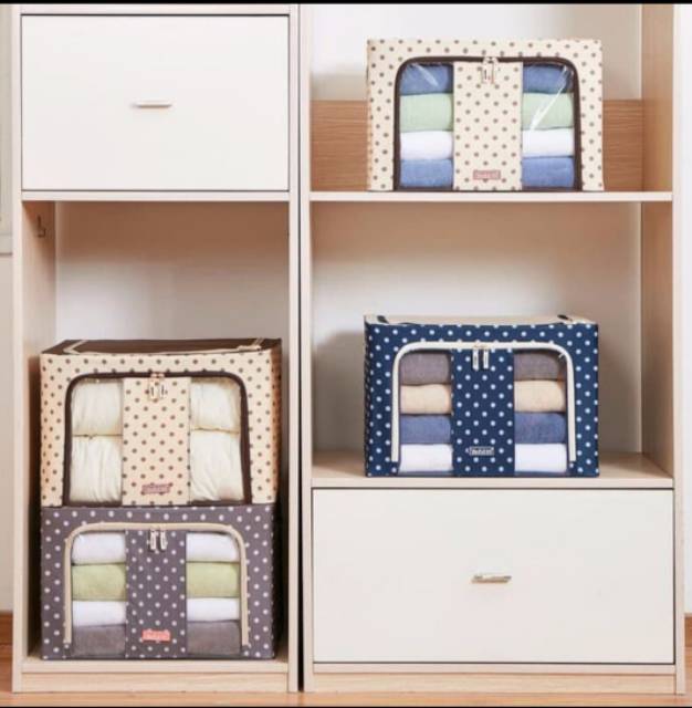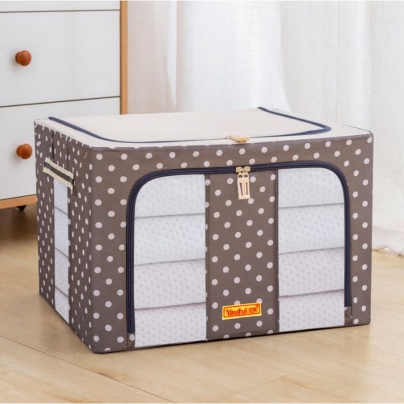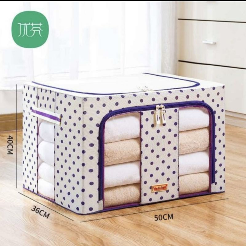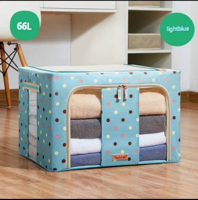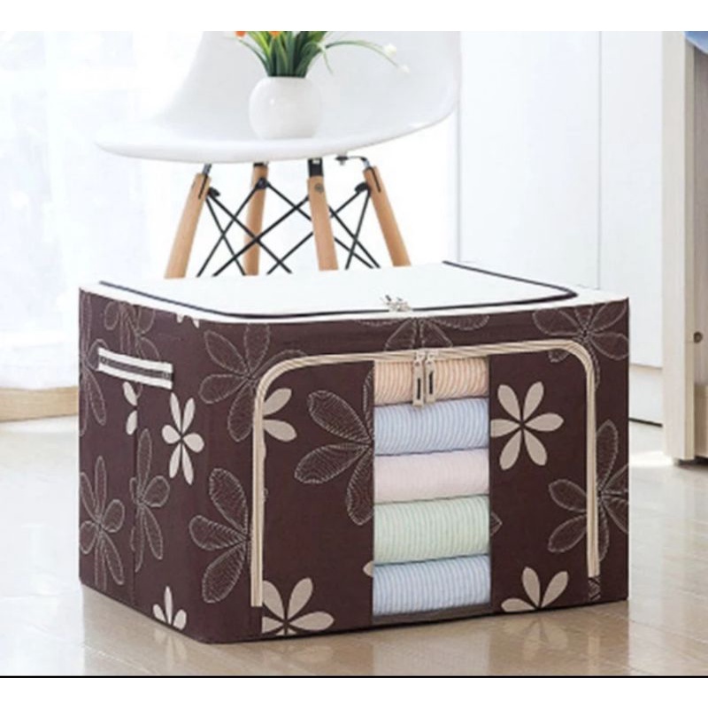 Kotak penyimpanan pakaian mainan STORAGE BOX 66 liters frame baja Double Zipper Large Box
