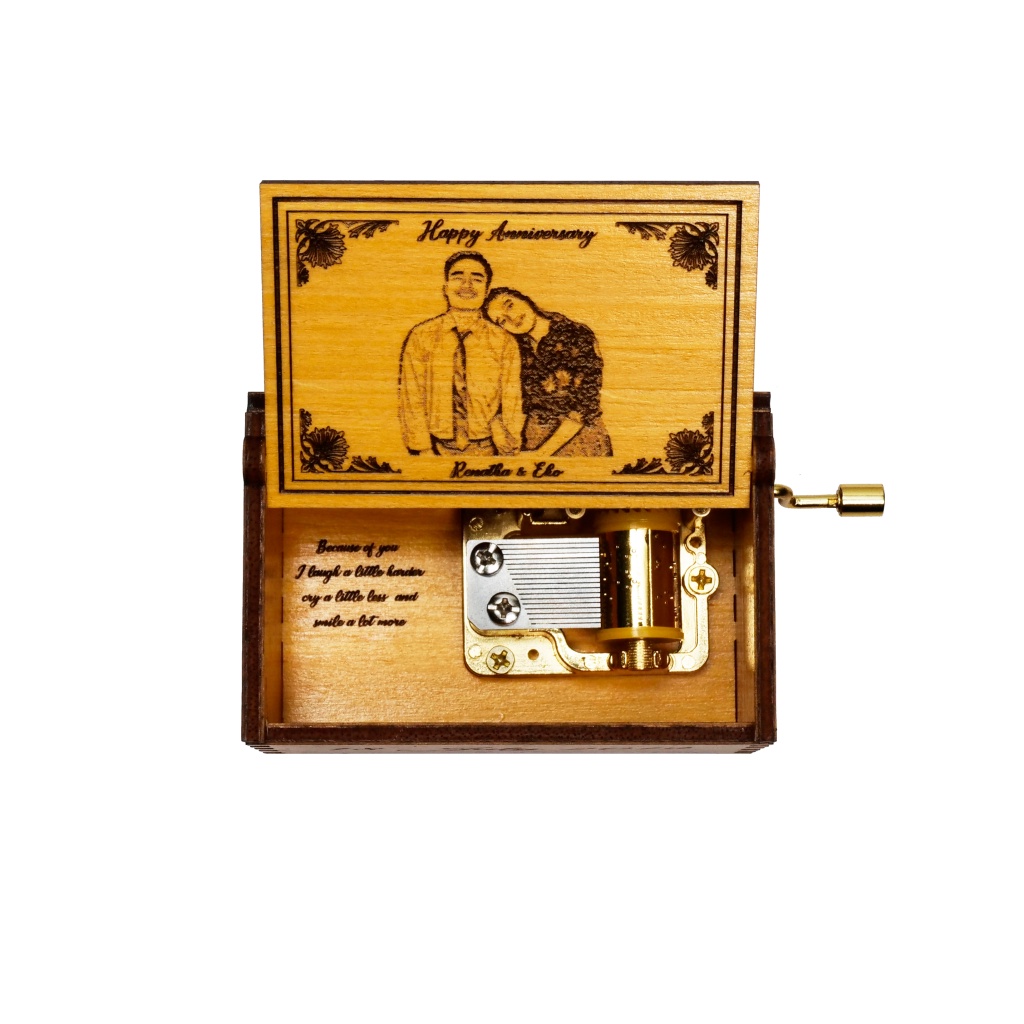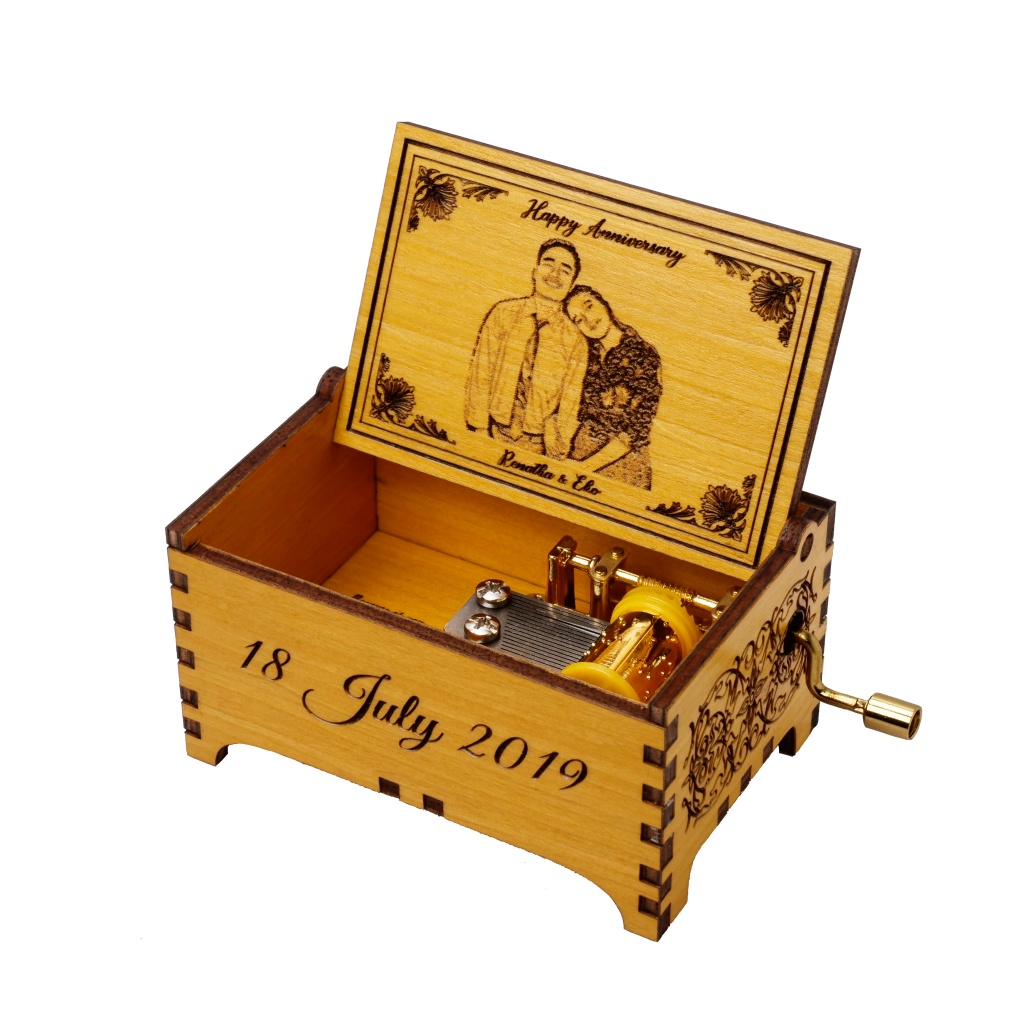 Kotakmusik Kayu Besar Manual - Foto dan Tulisan - Hadiah Unik/Kado Ulang Tahun/Pernikahan/Wisuda
