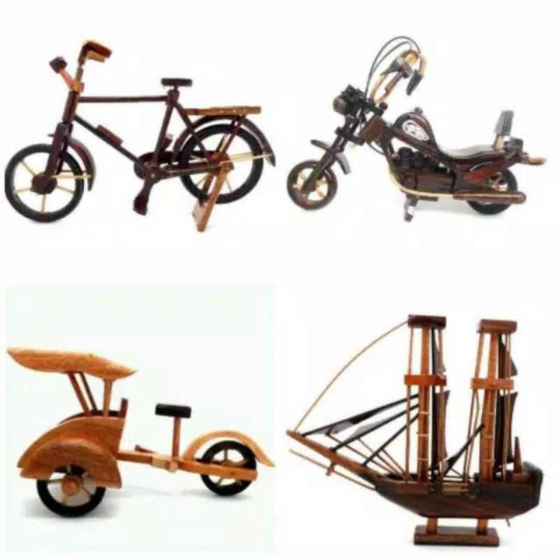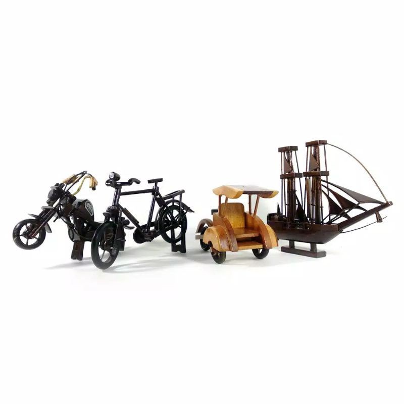 Kotakoi-mart Kerajinan Miniatur Kayu Hiasan Pajangan Dekorasi Rumah Becak sepeda kapal mobil harley