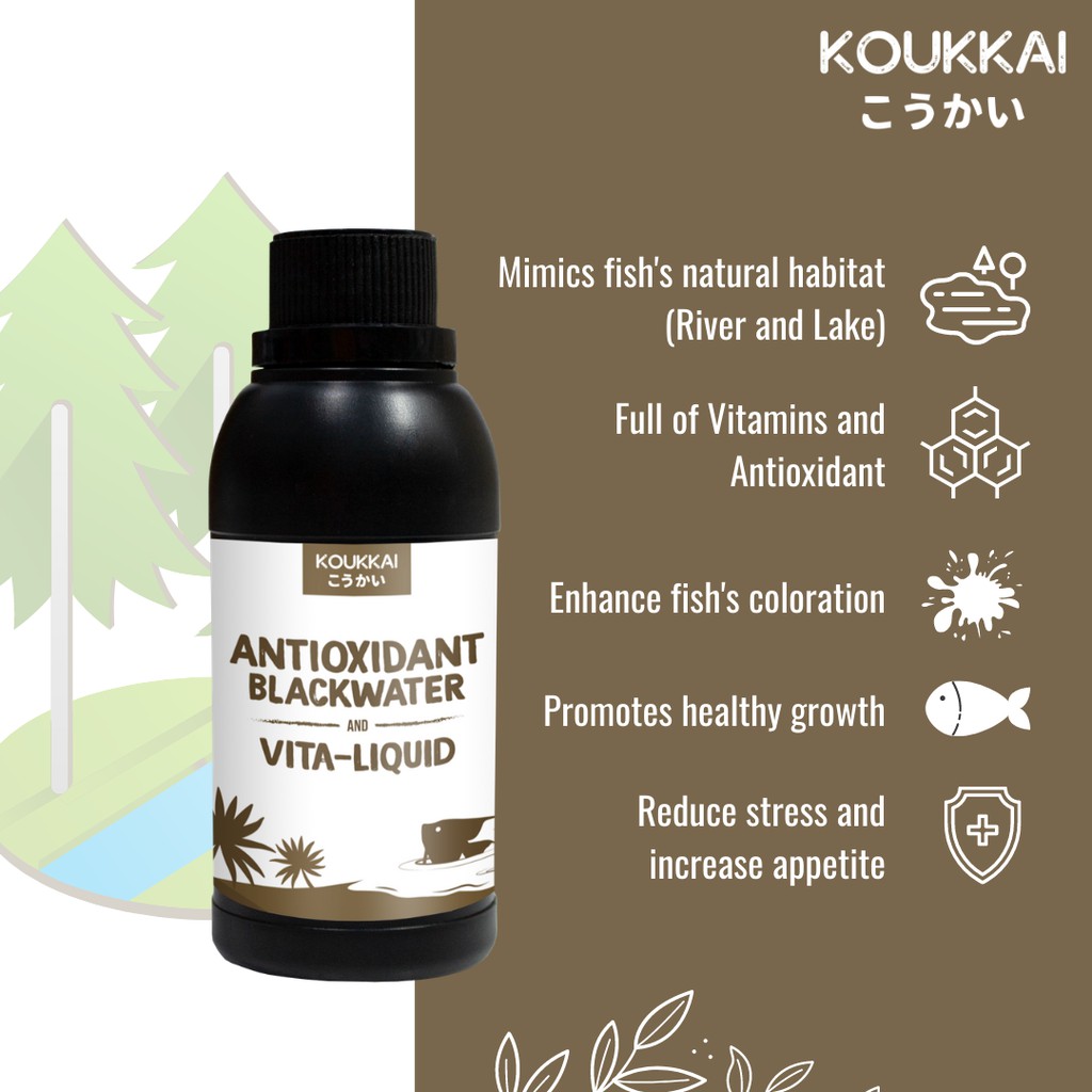 Koukkai Antioxidant BlackWater & Vita-Liquid Menaikkan Nafsu Makan & Mencerahkan Warna Ikan