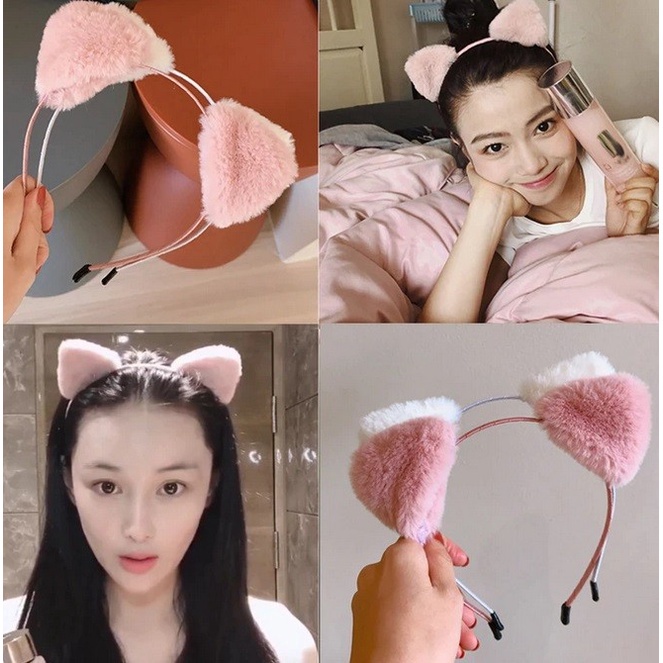 Anneui Kpop Cat Ear Headband Hair Clip Bando Jepit Kuping Kucing Cute Kiyowo Kawaii Cosplay Neko Halloween Party Blackpink Twice Red Velvet Itzy Ive Aespa Loona New Jeans Stayc