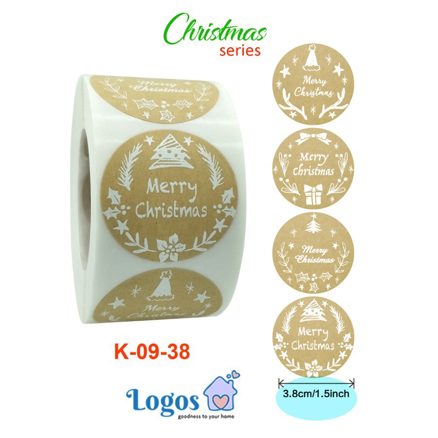 Kraft Christmas Round Sticker Stiker Bulat Xmas Natal Gift Hampers