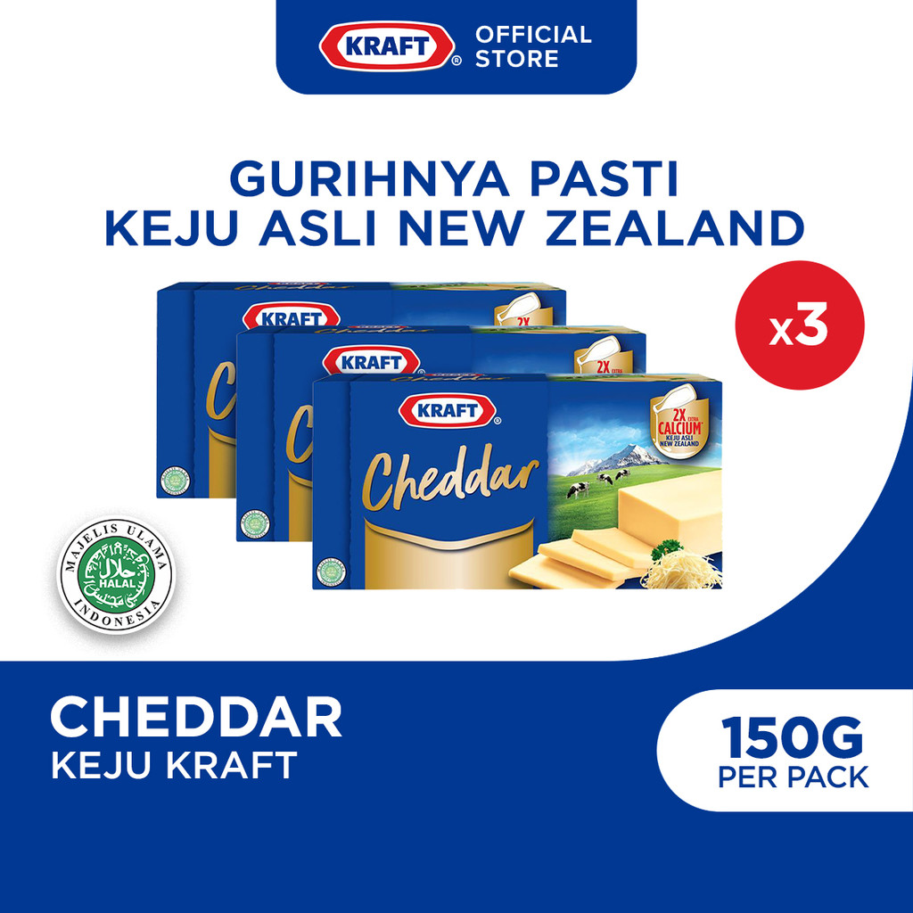 Kraft Cheddar 150g (Paket isi 3), Keju Cheddar Olahan