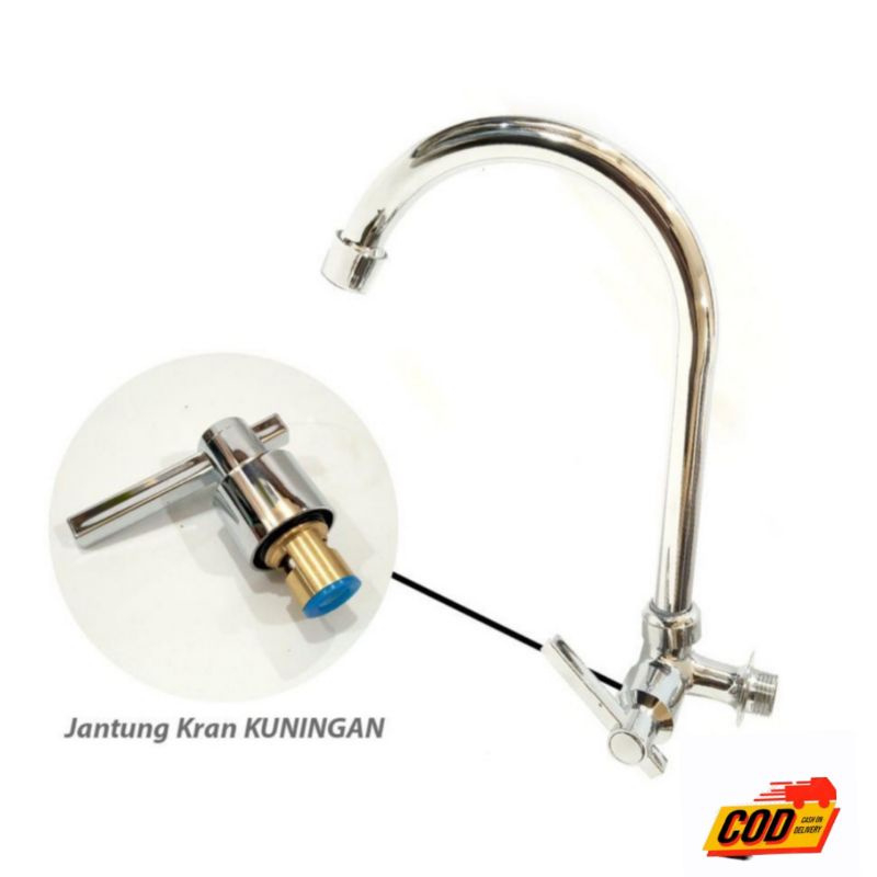 Kran Cuci Piring Kran Angsa Engkol Kran Bak Cuci Piring Keran Air Stainless Drat 1/2 Inch