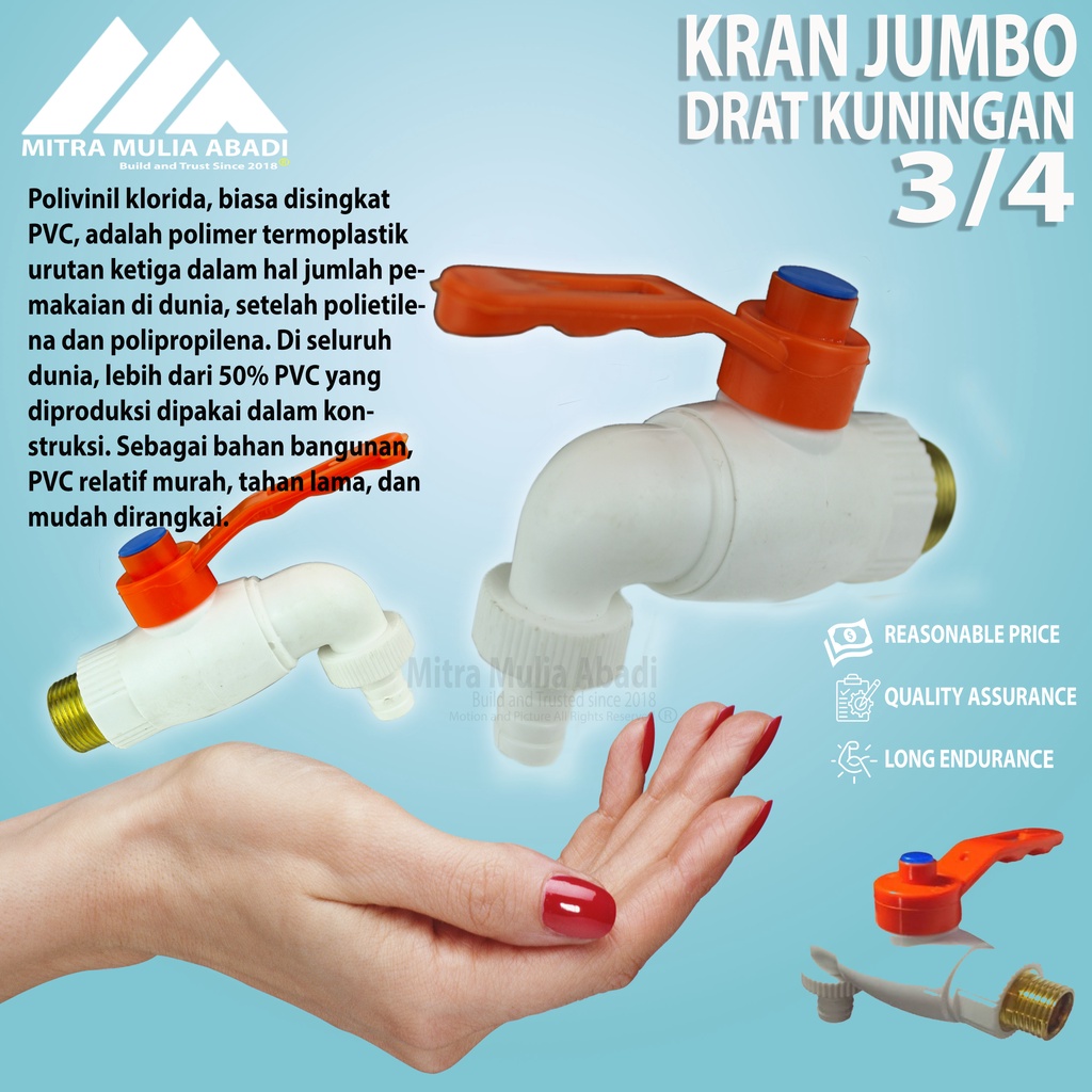Kran PVC Jumbo Drat Kuningan 3/4" inch
