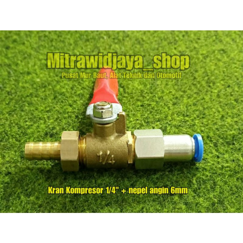 Kran angin kompresor 1/4" inc 1/4 in ball valve kran keran buka tutup angin kuningan dengan nepel neple fitting selang 6mm 8mm 10mm 12mm fitting angin spcf mpcf 6mm drat 1/4" kran angin plus nepel angin selang 6 mili kuningan HATO