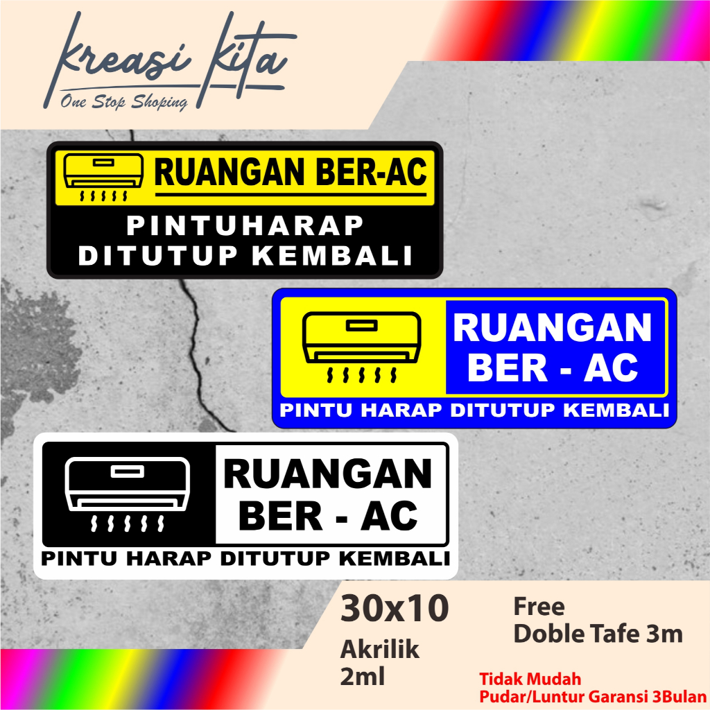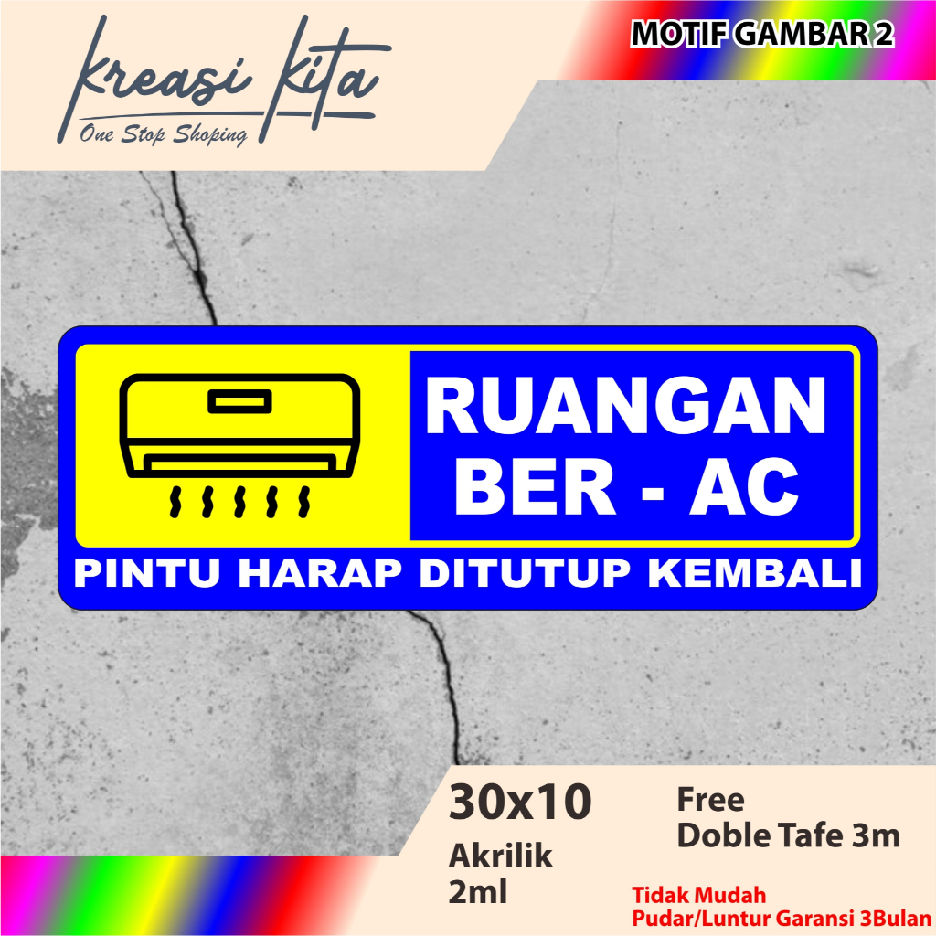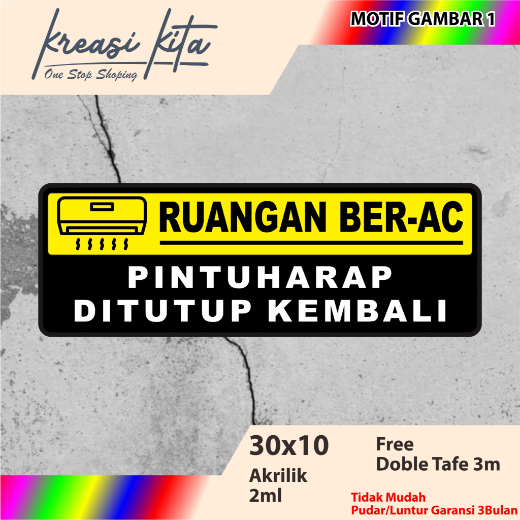 Kreasi Kita Ruangan Ber-AC Pintu Harap Ditutup Kembali Acrilic Signage