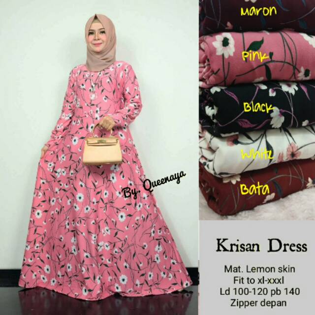 Krisan dress bahan lemon skin Fit to XXXL zipper depan