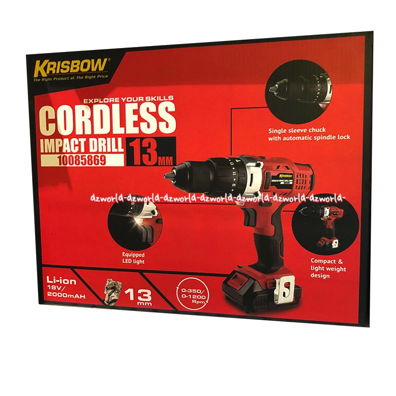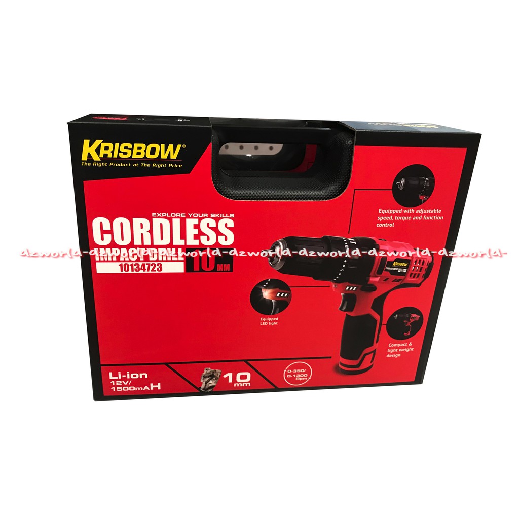 Krisbow Cordless Impact Drill 10mm Bor Tanpa Kabel kapasitas untuk baja Mesin Boor Tanpa Kabel