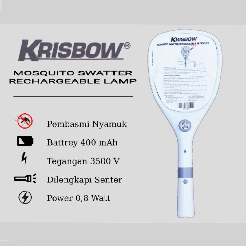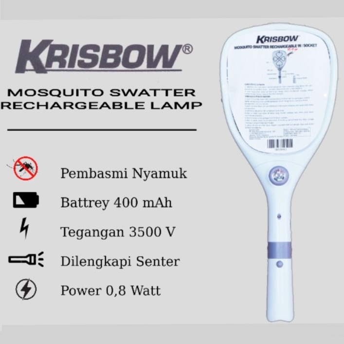 Krisbow Raket Nyamuk Cas Dengan Senter | Mosquito Killer Swatter With Flashlight Krisbow