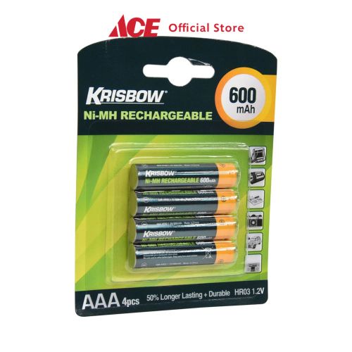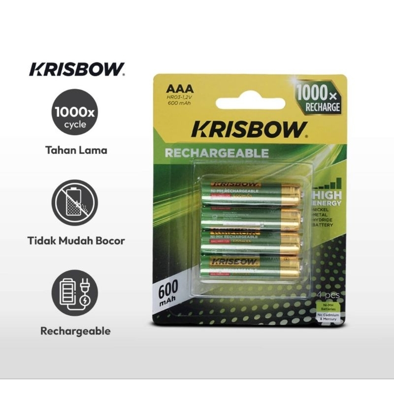 Krisbow Set 4 Pcs Baterai Rechargeable Size Aaa 600 Mah Batre Isi Ulang Cadangan Battery Bateray Peralatan Elektronik