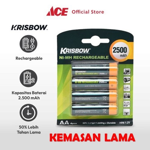 Krisbow Set Baterai Rechargeable Size Aa 2500 Mah 4 Pcs