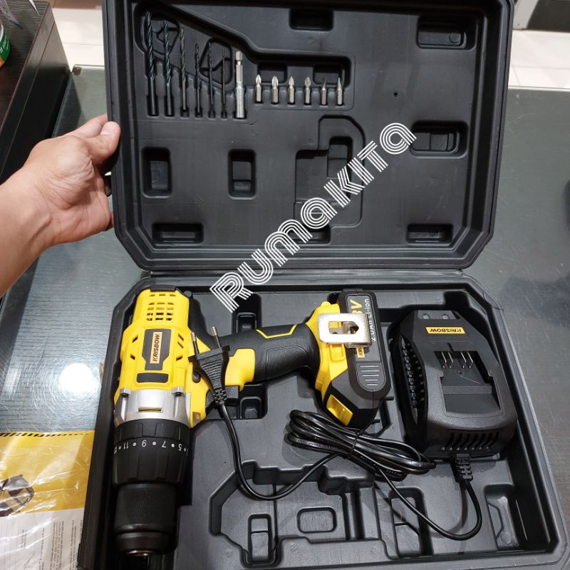 Krisbow cordless impact drill bor listrik tanpa kabel 18v