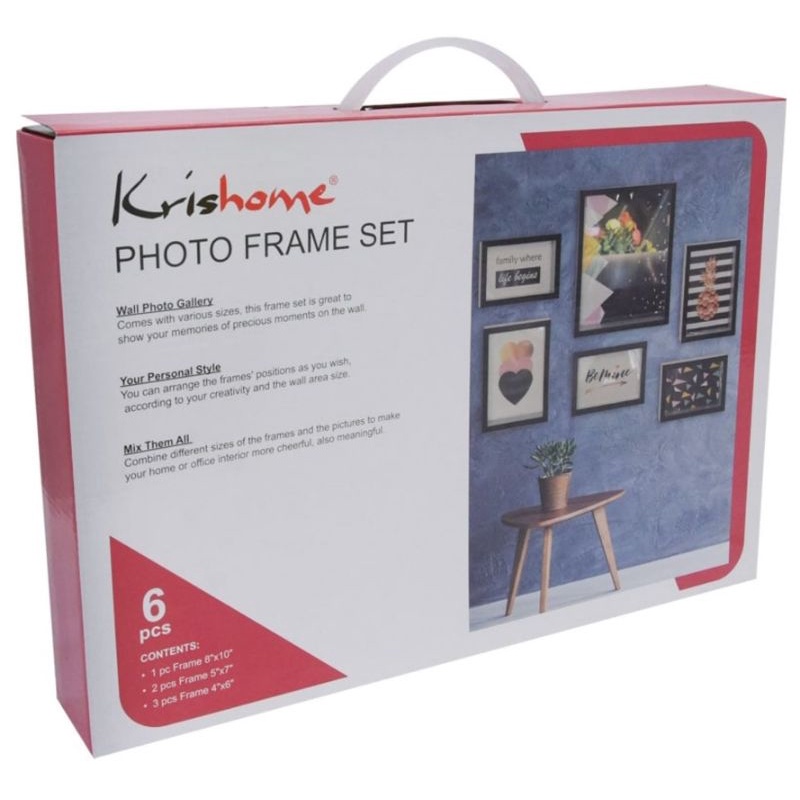Krishome Set 6 Pcs Bingkai Foto Plastik - Hitam/frame poto