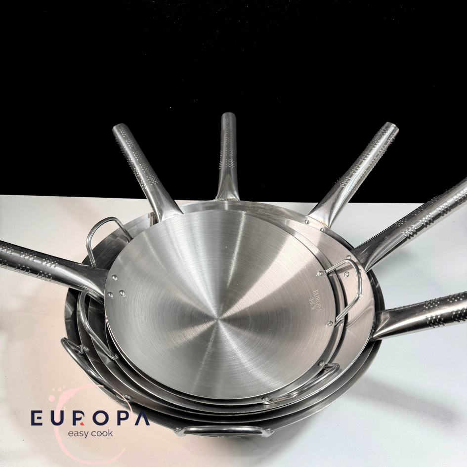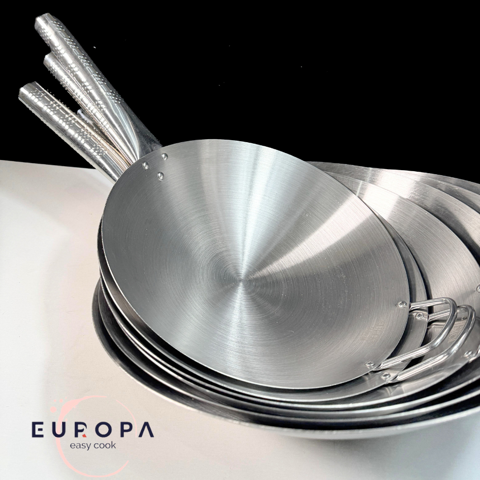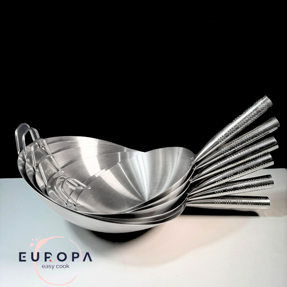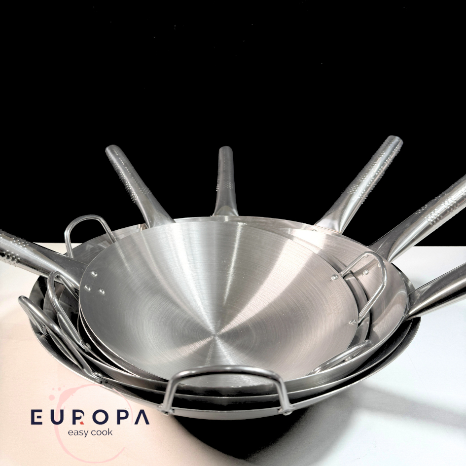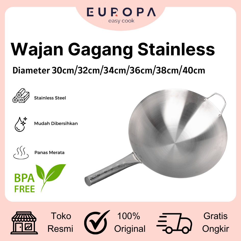 Kuali Wok Penggorengan Full Stainless Steel Wok Wajan Besar Tebal Long Handle 30-40 cm EUROPA
