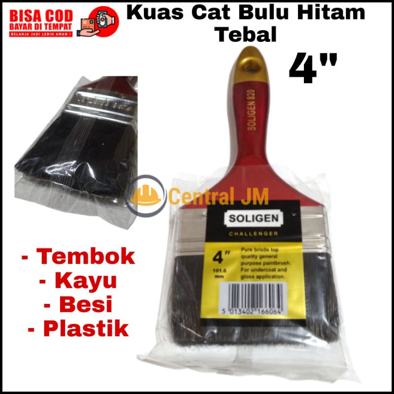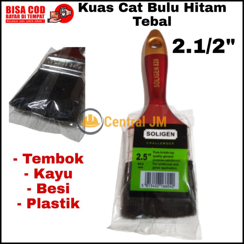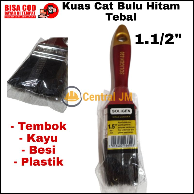 Kuas Cat Bulu Hitam Tebal [ Varian Ukuran ] PREMIUM - Alat Tukang Fleksibel Kuas Soligen Tembok Besi Kayu Plastik Original