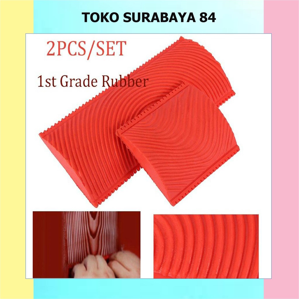 KUAS CAT POLA MOTIF KAYU RUBBER ROLLER BRUSH WOOD GRAINING 2 PCS
