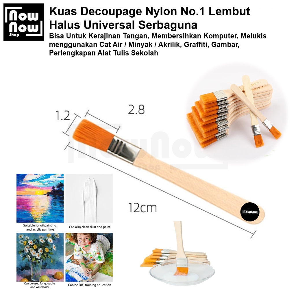 Kuas Decoupage Nylon No.1 Lembut Halus untuk Kerajinan Komputer Craft Lukis Cat Akrilik DIY Graffiti Brush Set untuk Seniman Artist Seni Minyak Sikat Sekolah Gambar Perlengkapan Alat Tulis