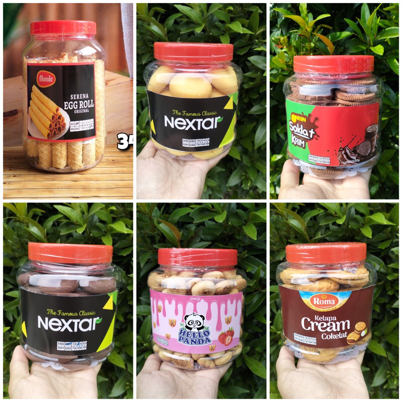 Kue/Jajan/Snack Lebaran toples Nobita ori Monde Egg Roll/Nextar/Nissin Soklat Krim/Roma Cream Coklat