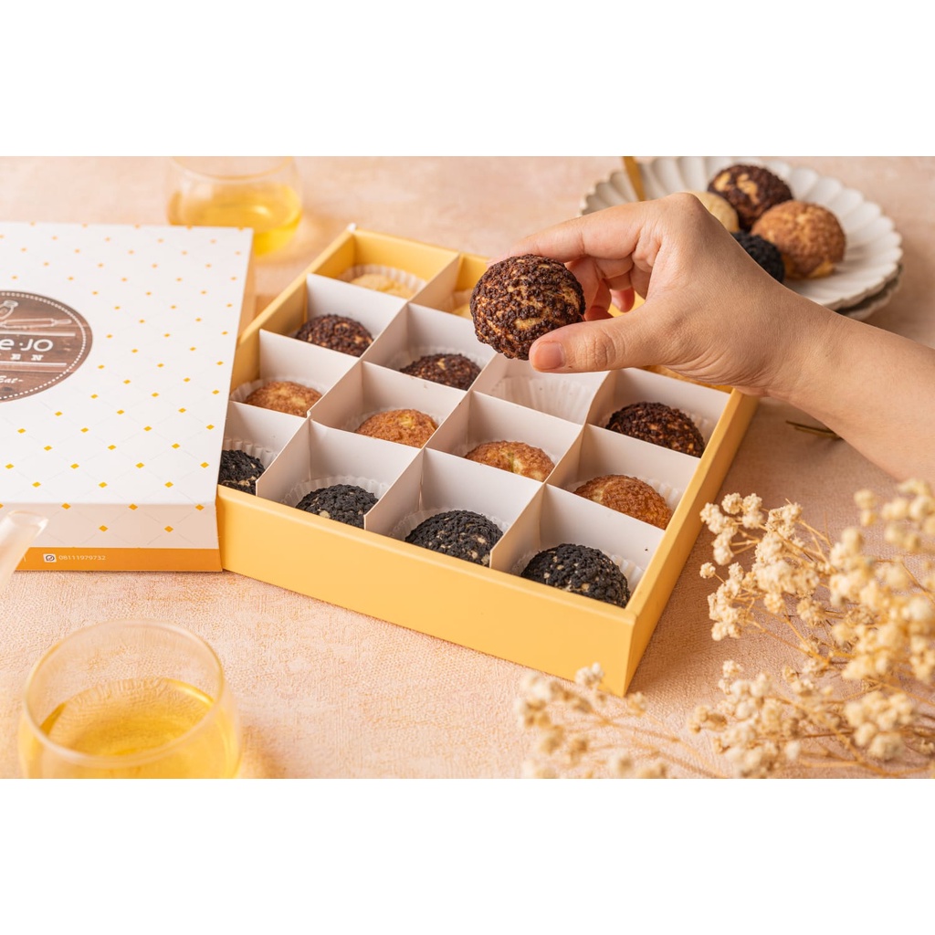Kue Sus Basah 1 Box Choux / Kue Sus isi Fla Vanilla, Coklat, Coffee, Chrunchy Biscoff (1 box isi 16pcs)