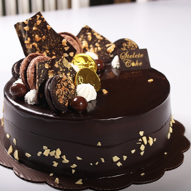 Kue Ulang Tahun Chocolate Fudge & Emas diameter 20 cm / Enak Murah