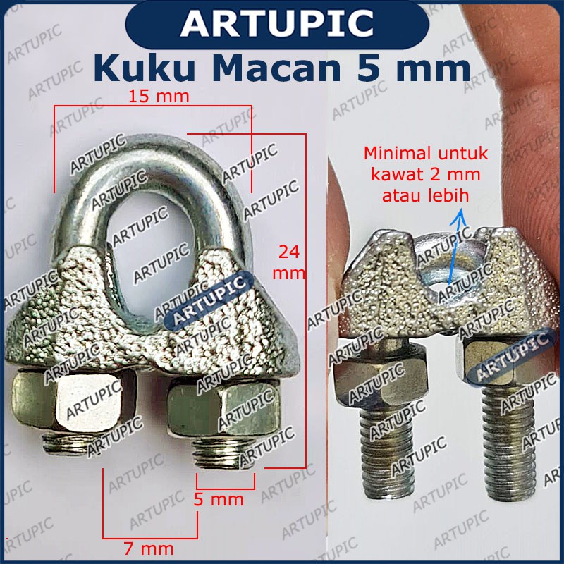 Kuku Macan 5 mm Klem Seling Wire Clip Clamp Tali Kawat Baja Kabel Seling Sling 5mm