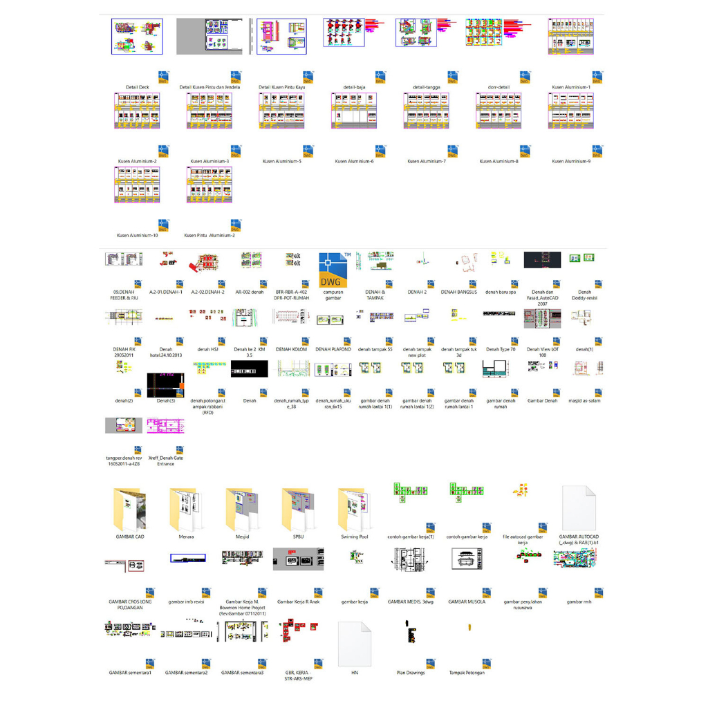 Kumpulan File AutoCAD Gambar Kerja/Detail Arsitektur, Struktur, MEP, Landscape (format *.dwg)
