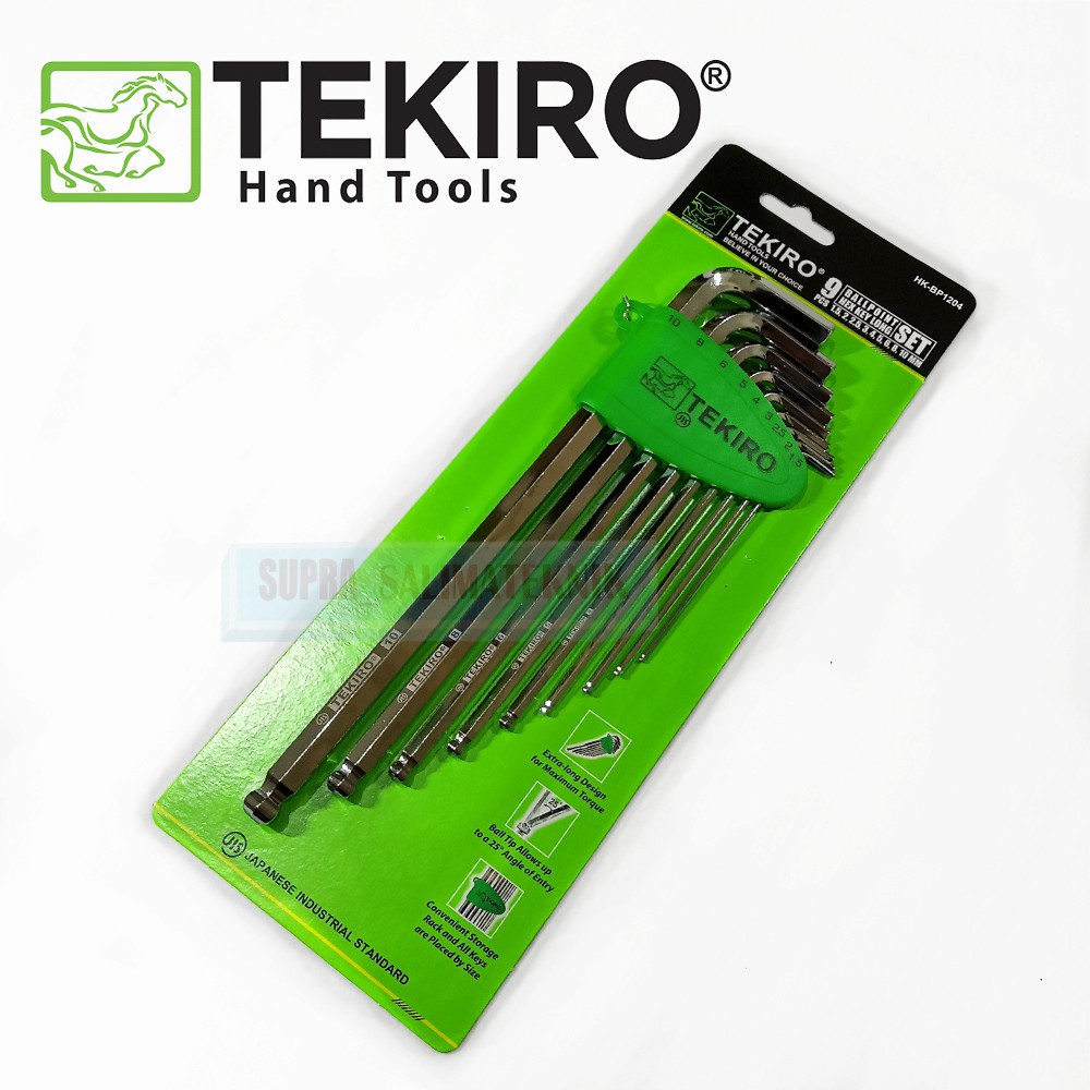 Kunci L BallPoint Set 9Pcs Ukuran 1,5-10mm TEKIRO / Ballpoint Hex Key Long set 9pcs Tekiro