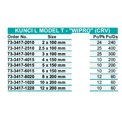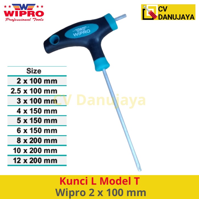 Kunci L Model Bentuk T Handle Rubber Wipro 2 x 100 mm