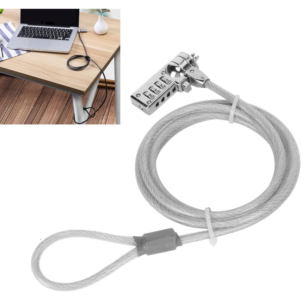 Kunci Pengaman Laptop | Kode 4 Buah Kombinasi Angka Tali Gembok Terbuat Dari Bahan Besi - Silver