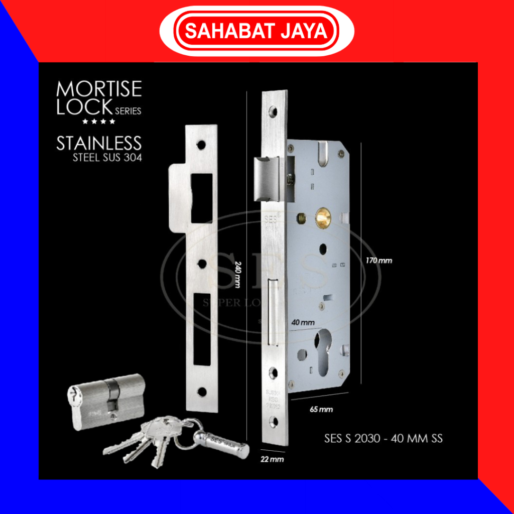Kunci Pintu Rumah Minimalis Set Pintu Kamar Komplit Body Lidah Lockcase SES 20304 SS Stainless