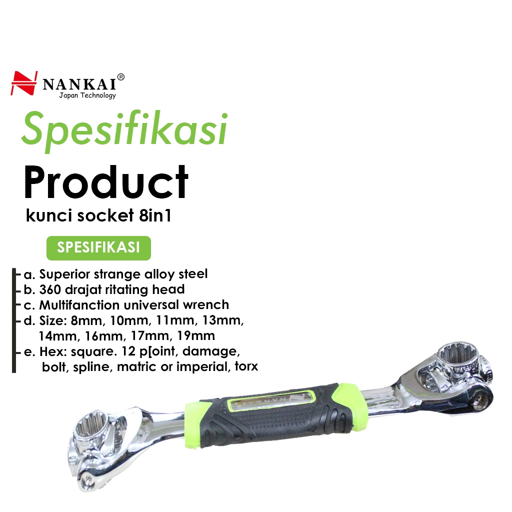 Kunci Socket 8 in 1 / Kunci Socket Serbaguna Nankai